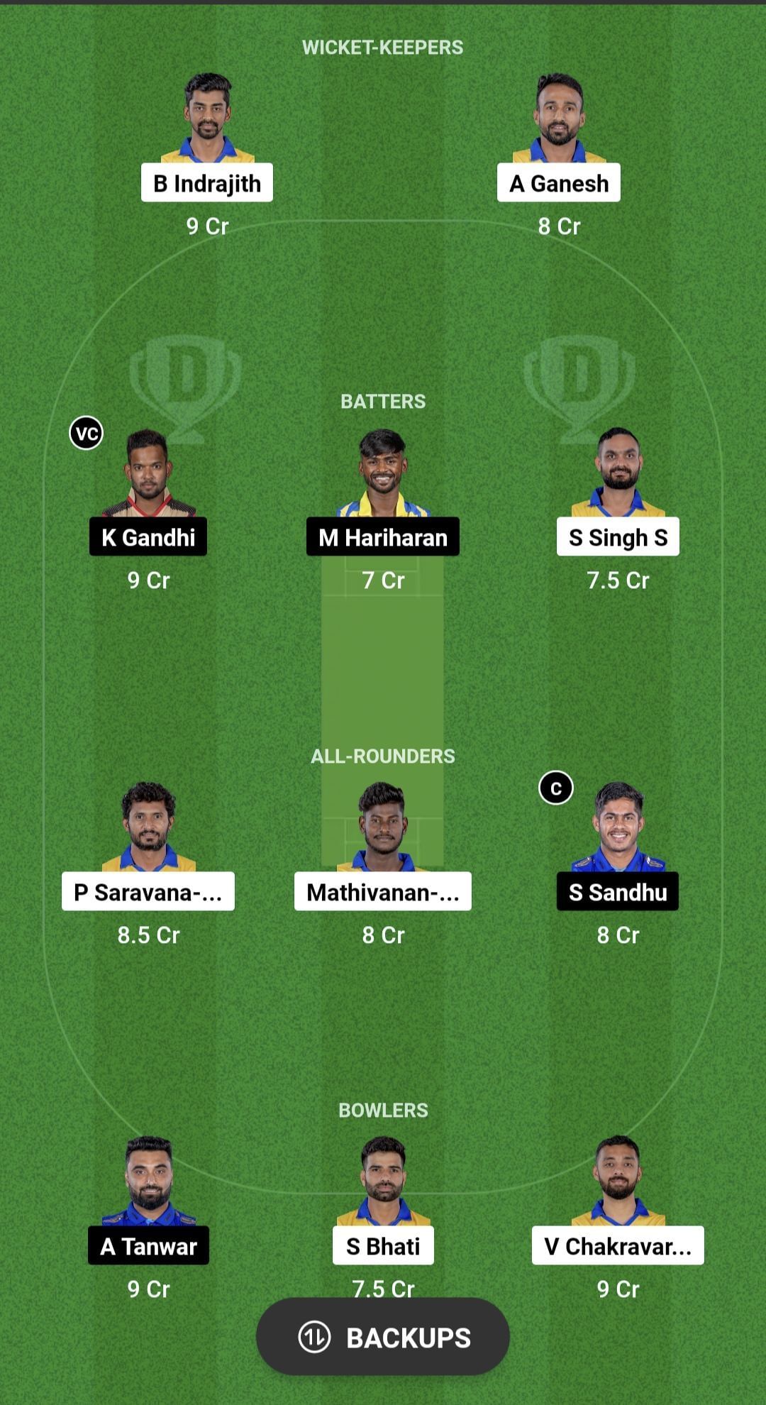 B Indrajith (c), Shivam Singh, Boopathi Kumar, Sarath Kumar M, Adithya Ganesh, R Vimal Khumar, P Saravana Kumar, M Mathivanan, Varun Chakravarthy, Subodh Bhati, and Kishoor.