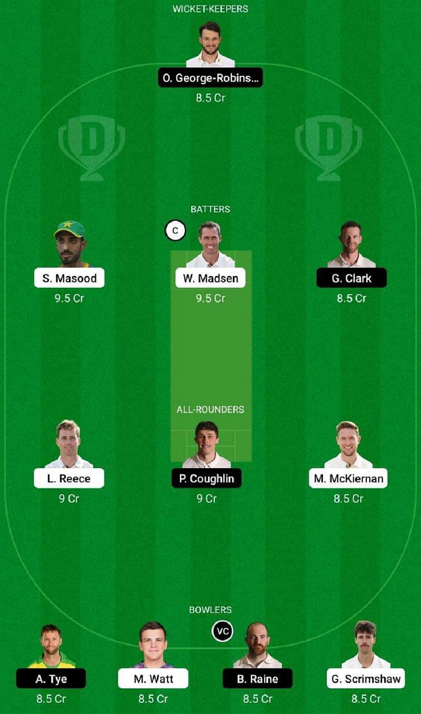 Fantasy Suggestion #1: Ollie Robinson, Shan Masood, Wayne Madsen, Michael Jones, Luis Reece, Paul Coughlin, Leus du Plooy, Mark Watt, Ben Raine, Brydon Carse and George Scrimshaw