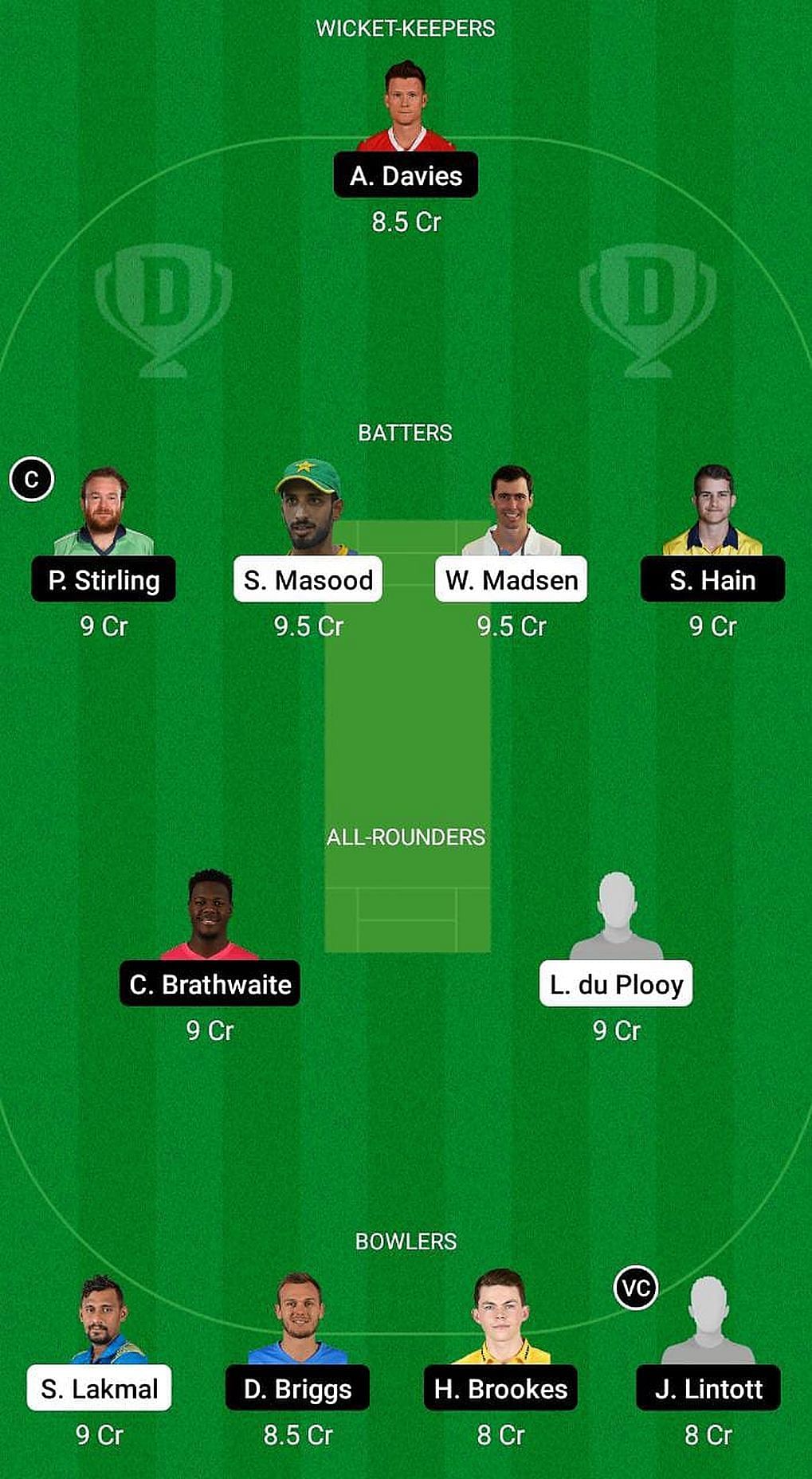 Fantasy Suggestion #1: Alex Davies, Paul Stirling, Wayne Madsen, Shan Masood, Sam Hain, Carlos Brathwaite, Leus du Plooy, Suranga Lakmal, Danny Briggs, Henry Brookes, Jake Lintott.