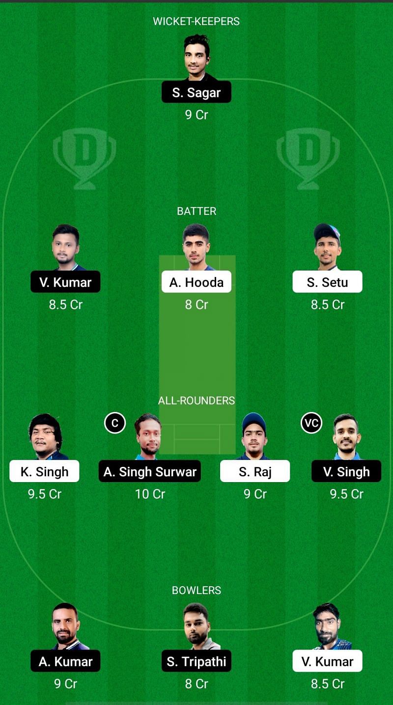 Fantasy Suggestion #1: Shresth Sagar, Vivek Kumar, Aryan Hooda, Satya Setu, Kaushal Singh, Atul Surwar, Sahil Raj, Vishal Singh, Amit Kumar, Sankat Mochan, Vikash Kumar.