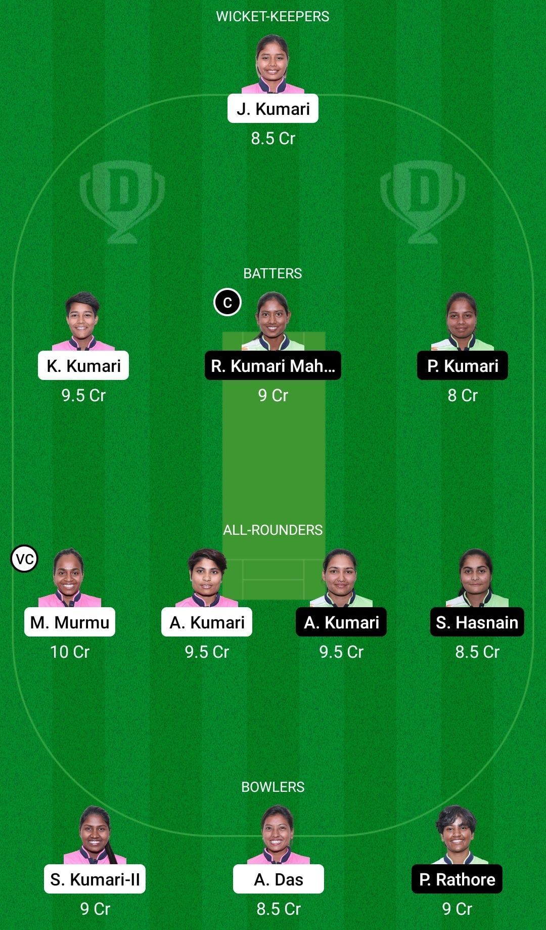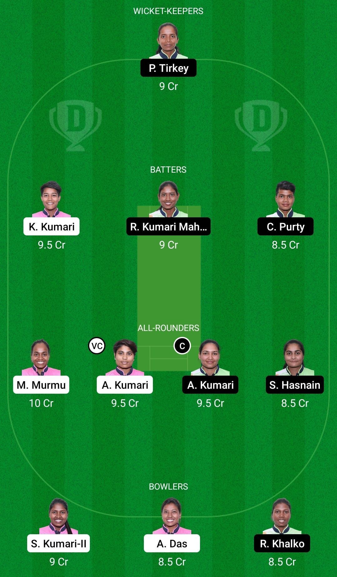 Fantasy Suggestion #1: Jaya Kumari, Khushbu Kumari, Ruma Kumari Mahato, Priya Kumari, Monika Murmu, Arti Kumari, Ashwani Kumari, Sifan Hasnain, Shanti Kumari, Anjali Das, Pavika Rathore.