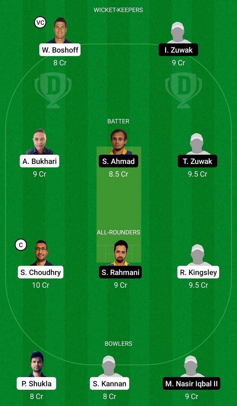 Fantasy Suggestion #1: Wynand Boshoff, Imal Zuwak, Asim Bukhari, Saeed Ahmed, Tariq Zuwak, Shahzeb Choudhry, Sami Rahmani, Ryan Kingsley, Prashant Shukla, Shravan Kannan, Nasir Iqbal