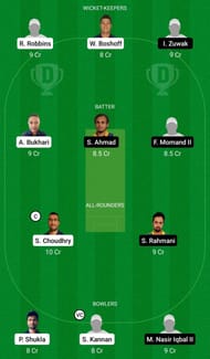 Fantasy Suggestion #2: Richie Robbins, Wynand Boshoff, Imal Zuwak, Asim Bukhari, Saeed Ahmed, Farhad Momand, Shahzeb Choudhry, Sami Rahmani, Prashant Shukla, Shravan Kannan, Nasir Iqbal