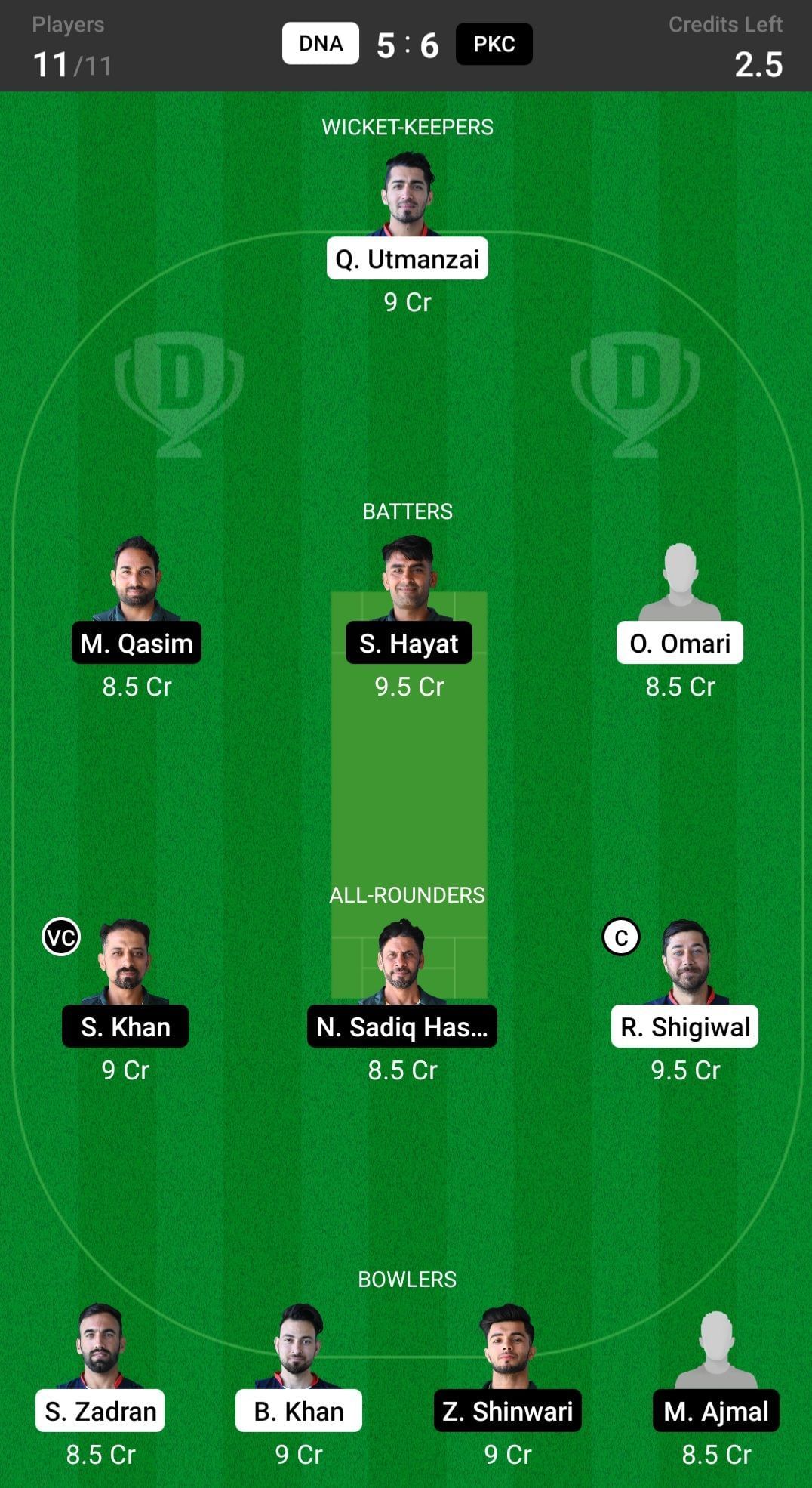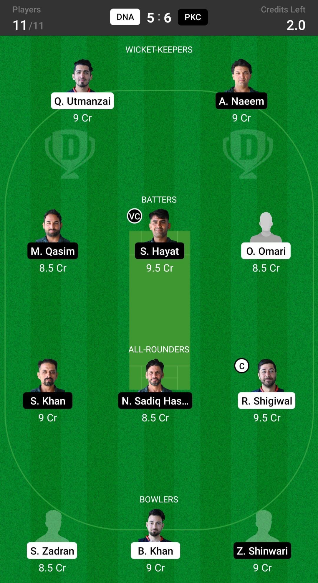 Fantasy suggestion #1: Q Utmanzai, A Naeem, M Qasim, S Hayat, O Omari, S Khan, N Sadiq, B Khan, Z Shinwari, R Shigiwal, S Zadran