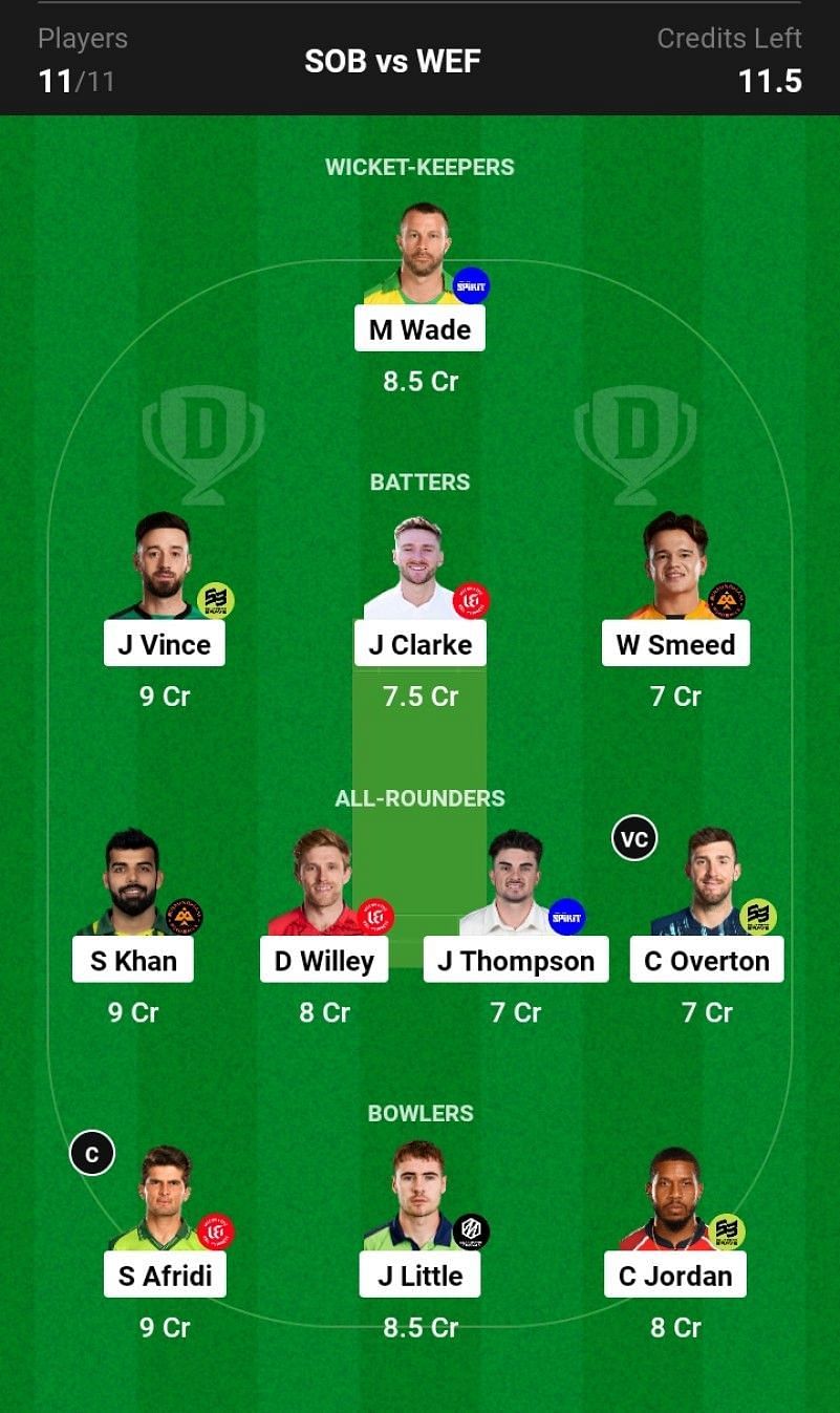 Dream11 Multi-Match Fantasy: The Hundred Men's 2023: Best Fantasy XI for Match 5 - SOU vs WEL: Team Selection and Captaincy Tips