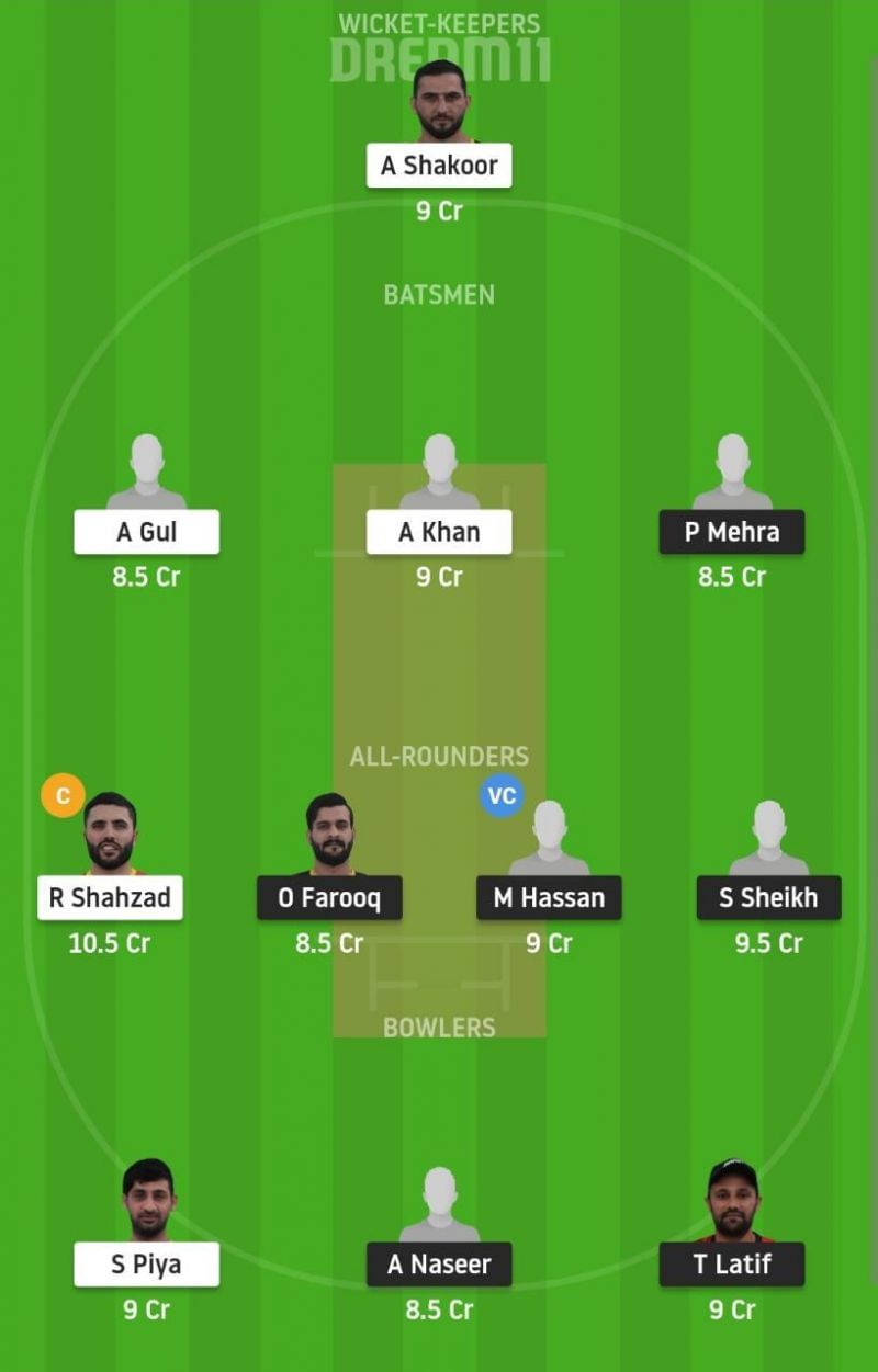 Captain: Shahrukh Sheikh, Vice-Captain: Abdul Shakoor