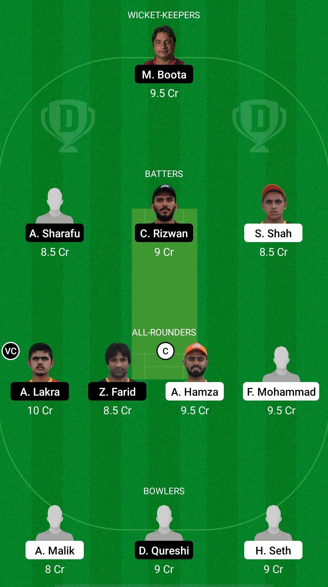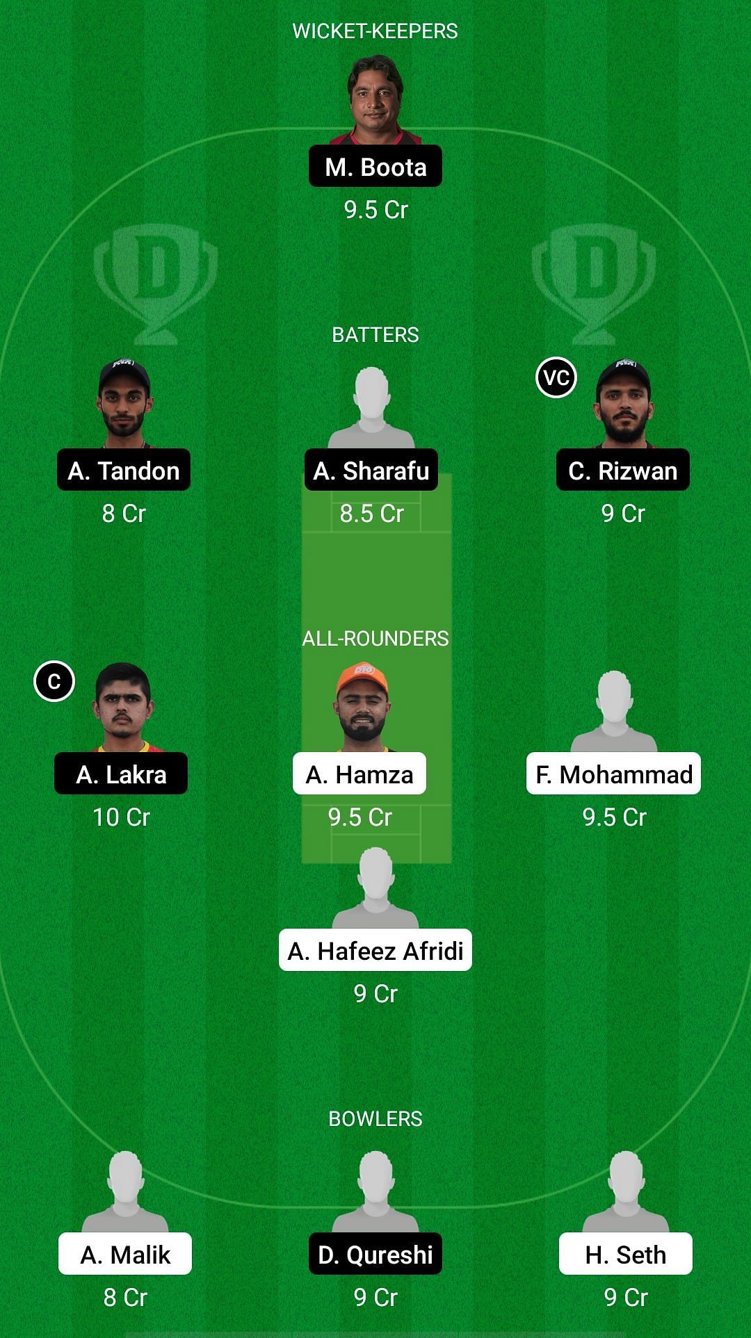Captain: Ameer Hamza. Vice-captain: Aryan Lakra.