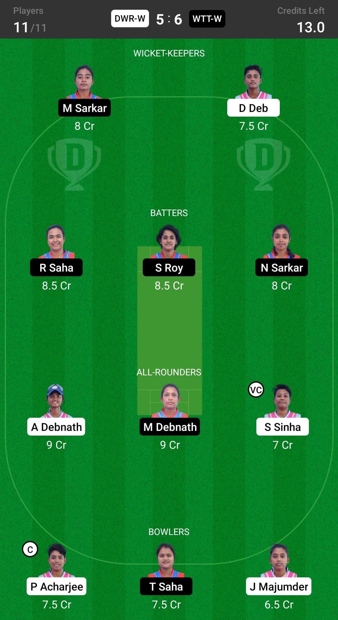 DWR-W vs WTT-W Dream11 Match Top Picks