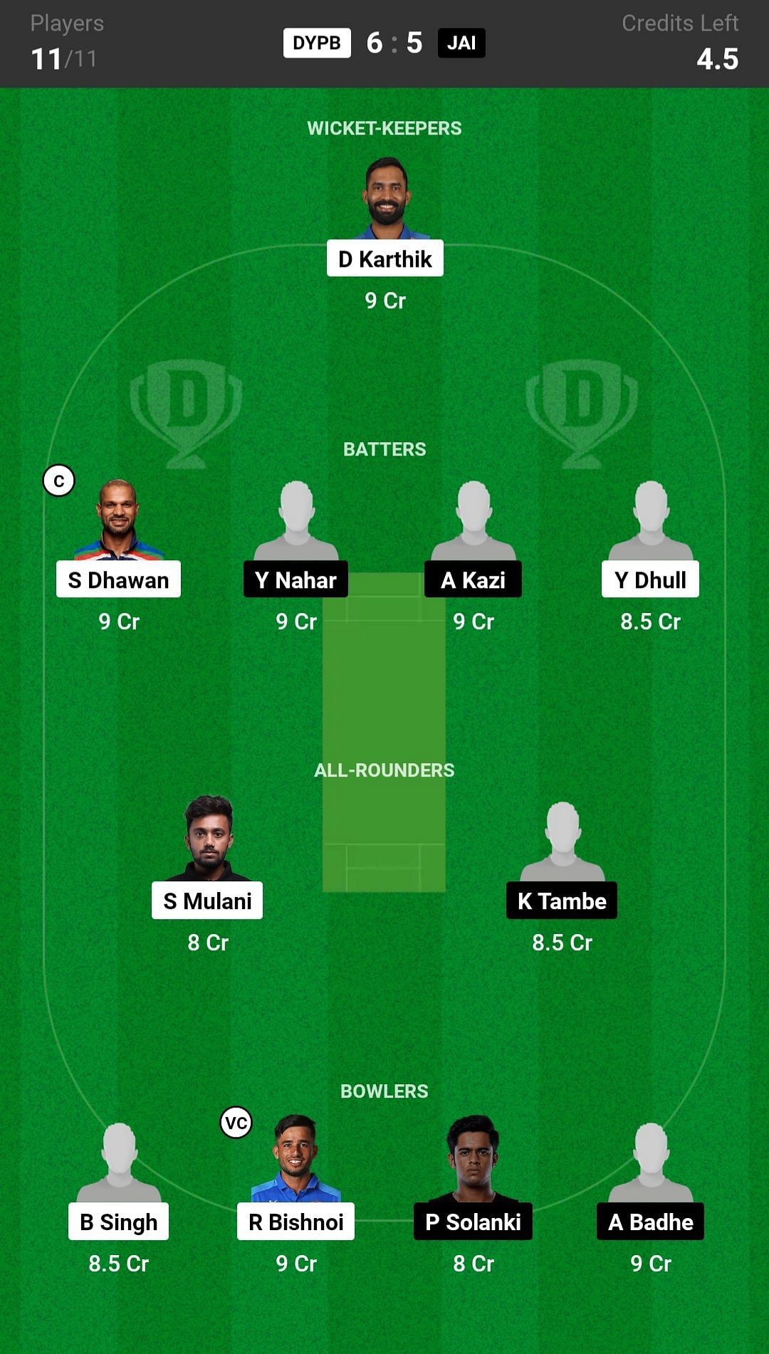 Batters: S Dhawan, Y Dhull, Y Nahar, A Kazi
