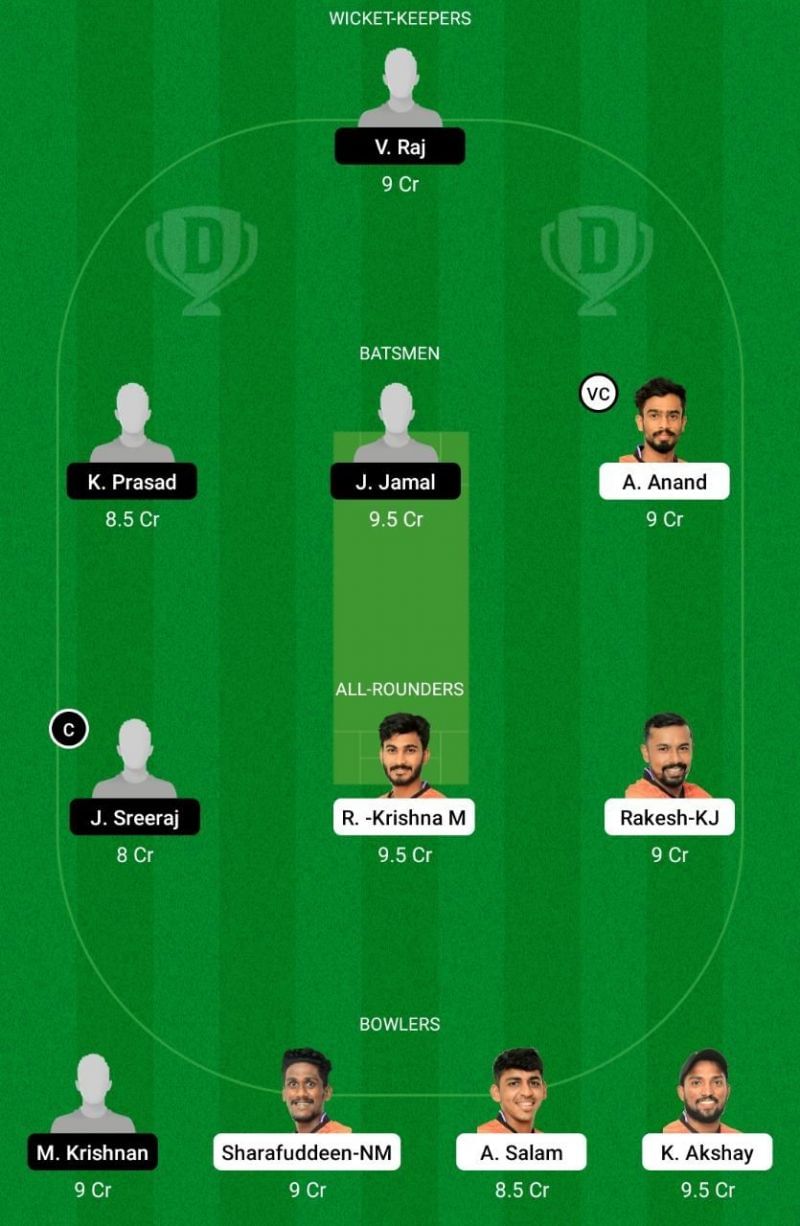 Fantasy Suggestion #1: Vishnu Raj, Ashwin Anand, Krishna Prasad, Jafar Jamal, JR Sreeraj, Rakesh KJ, Rabin Krishna M, Sharafuddeen NM, KC Akshay, Manu Krishnan, Asif Salam