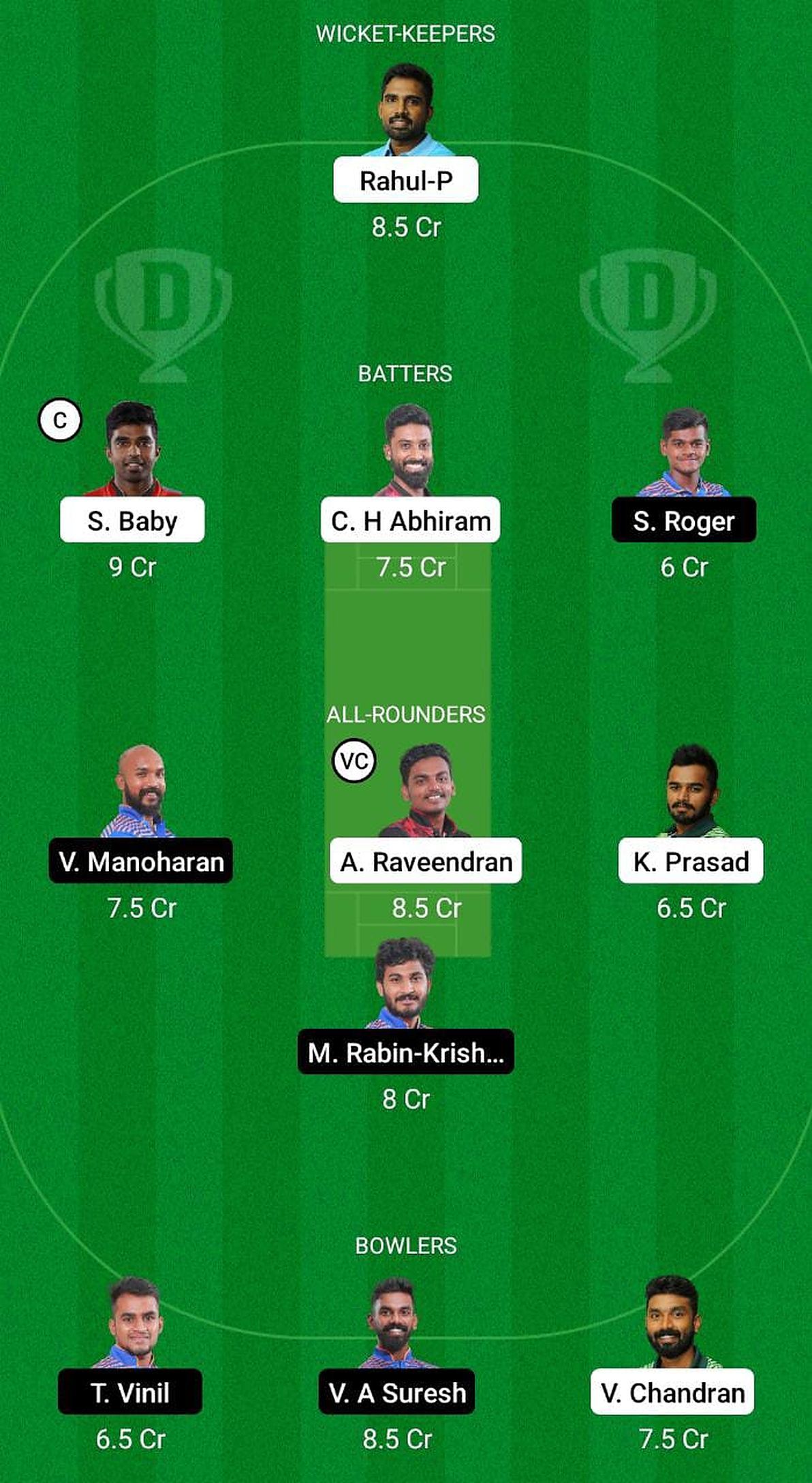 Batters: Sachin Baby, Abhiram CH, Shoun Roger
