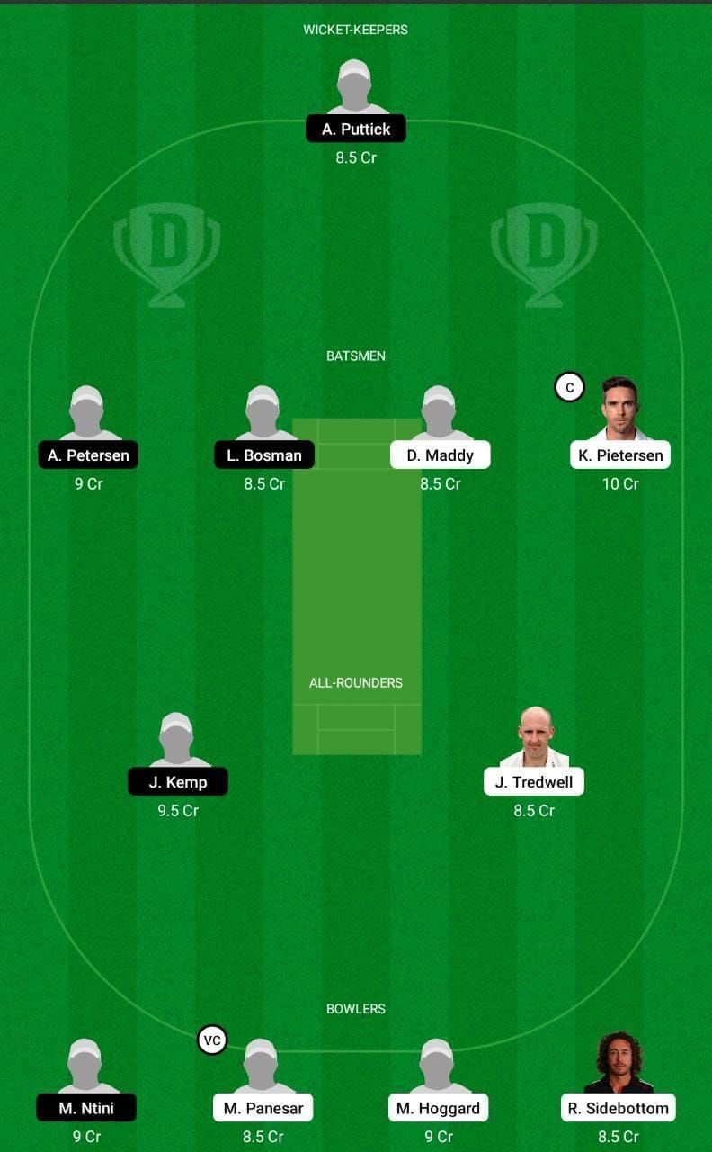 Fantasy Suggestion #1: Andrew Puttick, Loots Bosman, Alviro Petersen, Kevin Pietersen, Darren Maddy, Justin Kemp, James Tredwell, Ryan Sidebottom, Makhaya Ntini, Monty Panesar and Matthew Hoggard