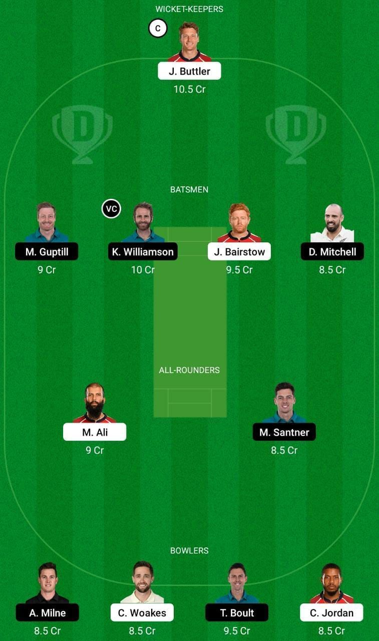 Fantasy Suggestion #2: Jonny Bairstow, Jos Buttler, Daryl Mitchell, Martin Guptill, Kane Williamson, Moeen Ali, Mitchell Santner, Adam Milne, Chris Woakes, Chris Jordan and Trent Boult