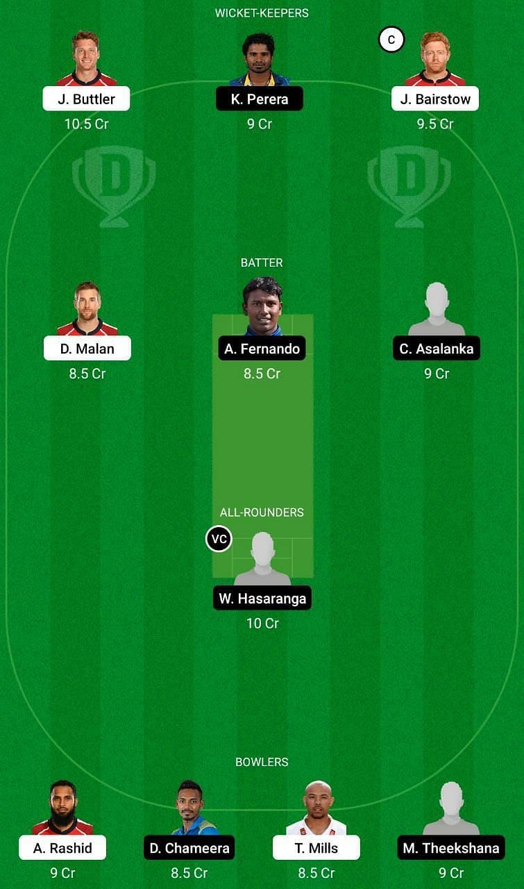 Fantasy Suggestion #1: Jos Buttler, Jonny Bairstow, Kusal Perera, Dawid Malan, Avishka Fernando, Charith Asalanka, Wanindu Hasaranga, Adil Rashid, Dushmantha Chameera, Tymal Mills and Maheesh Theekshana