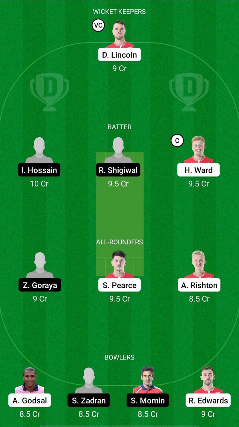 Fantasy Suggestion #1: Dan Lincoln, Iqbal Hossain, Mirza Ahsan, Harrison Ward, Zeeshan Goraya, Sam Pearce, Bilal Zalmai, Sahel Zadran, Aqib Iqbal, Rich Edwards, Alex Russell.