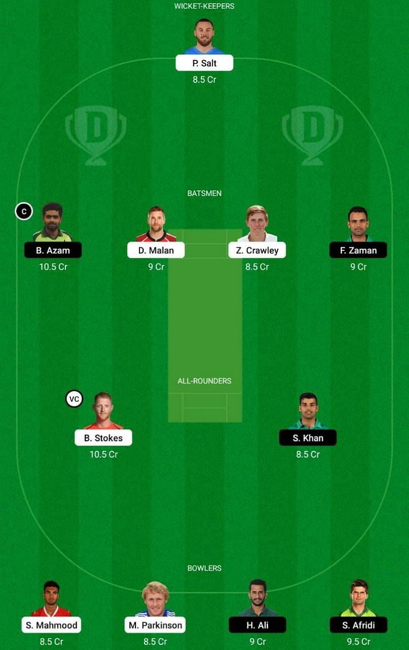Fantasy Suggestion #2: Mohd Rizwan, Dawid Malan, Zak Crawley, Babar Azam, Fakhar Zaman, Ben Stokes, Shadab Khan, Saqib Mahmood, Matt Parkinson, Haris Rauf and Shaheen Afridi