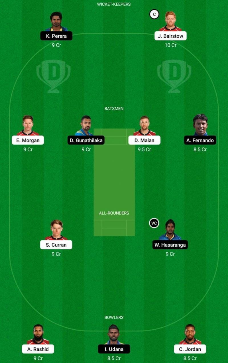 Fantasy Suggestion #1: Jonny Bairstow, Kusal Perera, Avishka Fernando, Danushka Gunathilaka, Dawid Malan, Eoin Morgan, Sam Curran, Wanindu Hasaranga, Adil Rashid, Chris Jordan and Isuru Udana