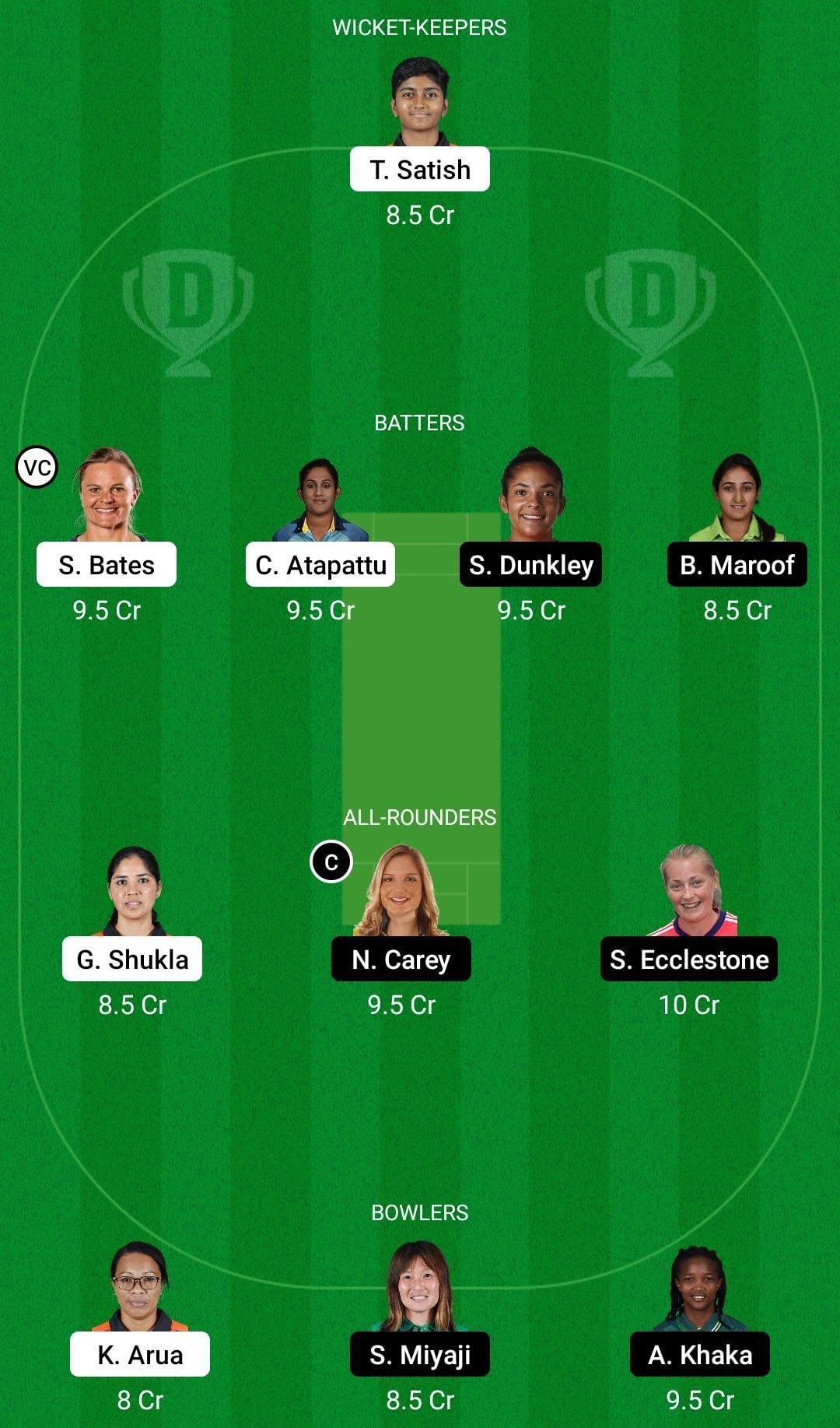 Fantasy Suggestion #2: Theertha Satish, Suzie Bates, Chamari Athapaththu, Sophia Dunkley, Bismah Maroof, Gunjan Shukla, Nicola Carey, Sophie Ecclestone, Kaia Arua, Shizuka Miyaji, Ayabonga Khaka