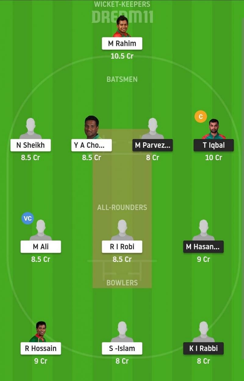 Captain: Tamim Iqbal Vice-Captain: Muktar Ali