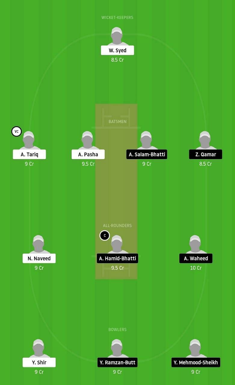 Fantasy Suggestion #2: W Syed, A Salam-Bhatti, T Tariq, A Pasha, Z Qamar, A Hamid-Bhatti, A Waheed, N Naveed, H Nauman, Y Mehmood-Sheikh and Y Ramzan-Butt