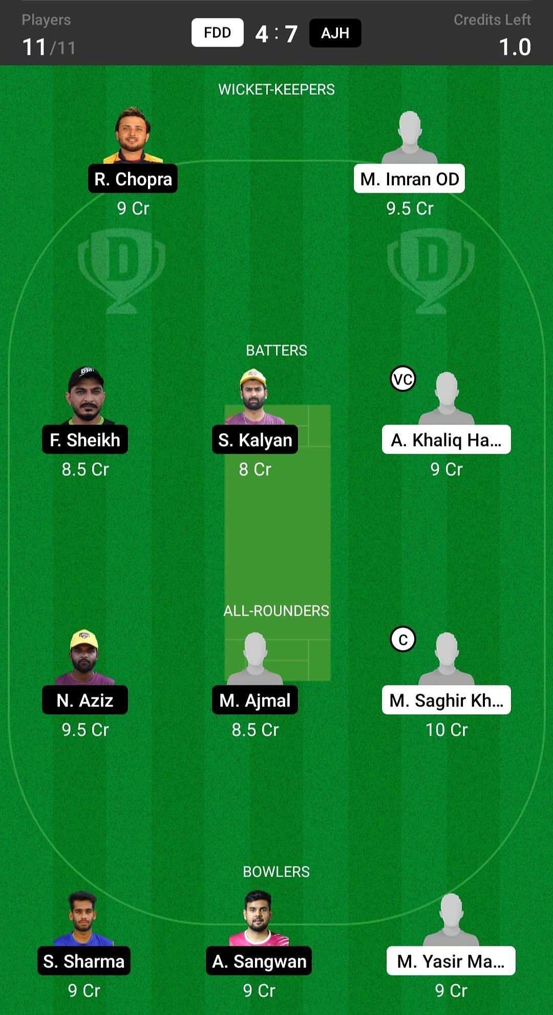 Top players to pick in FDD vs AJH Dream11 prediction team