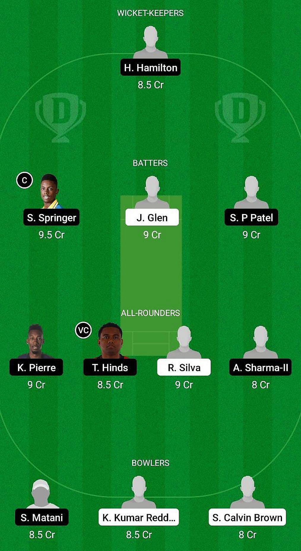 Fantasy Suggestion #1: Hanchard Hamilton, Khary Pierre, Sagar P Patel, Shamar Springer, Siddarth Matani, Terrance Hinds, Javelle Glen, Aditya Sharma, Roy Silva, Kiran Kumar Reddy Vade, Shamarie Calvin Brown