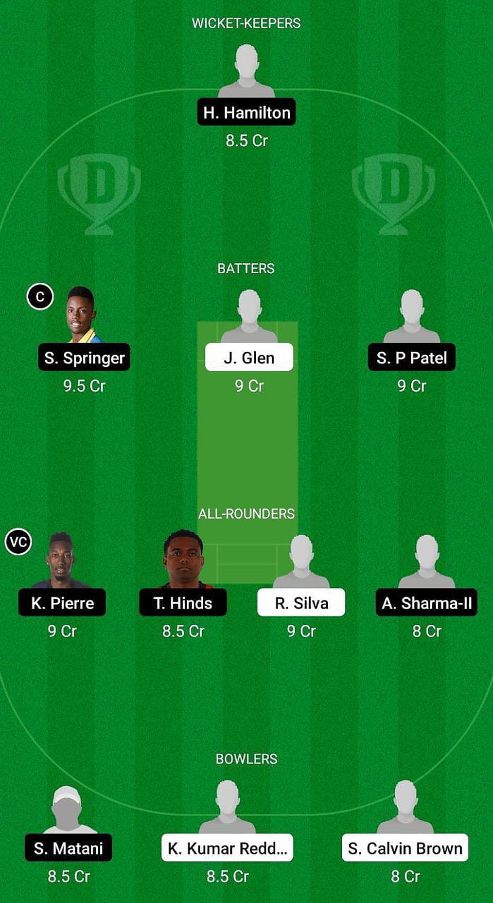 Fantasy Suggestion #2: Hanchard Hamilton, Khary Pierre, Sagar P Patel, Shamar Springer, Siddarth Matani, Terrance Hinds, Javelle Glen, Aditya Sharma, Roy Silva, Kiran Kumar Reddy Vade, Shamarie Calvin Brown