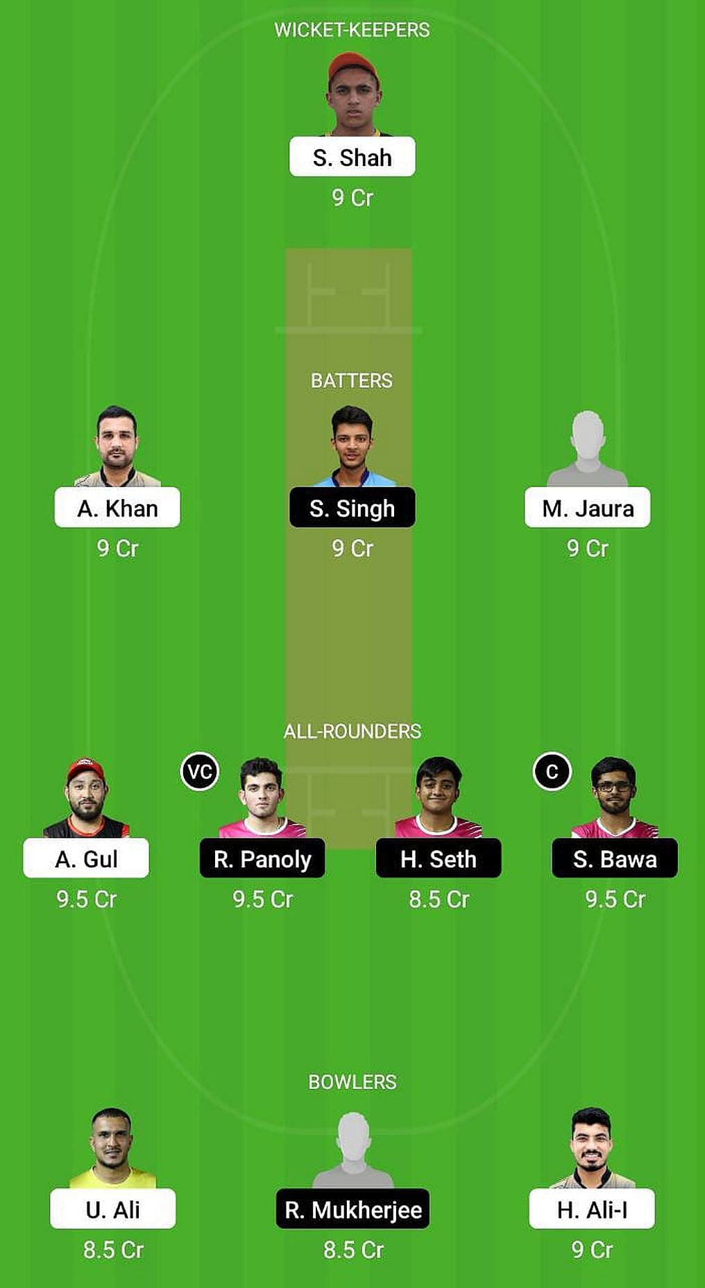 Fantasy suggestion #2: Syed Haider, Ansar Khan, Shaurya Singh, Muhammad Ikram Jaura, Amjad Gul, Ronak Panoly, Shival Bawa, Harshit Seth, Umair Ali, Rishabh Mukherjee, Haider Ali