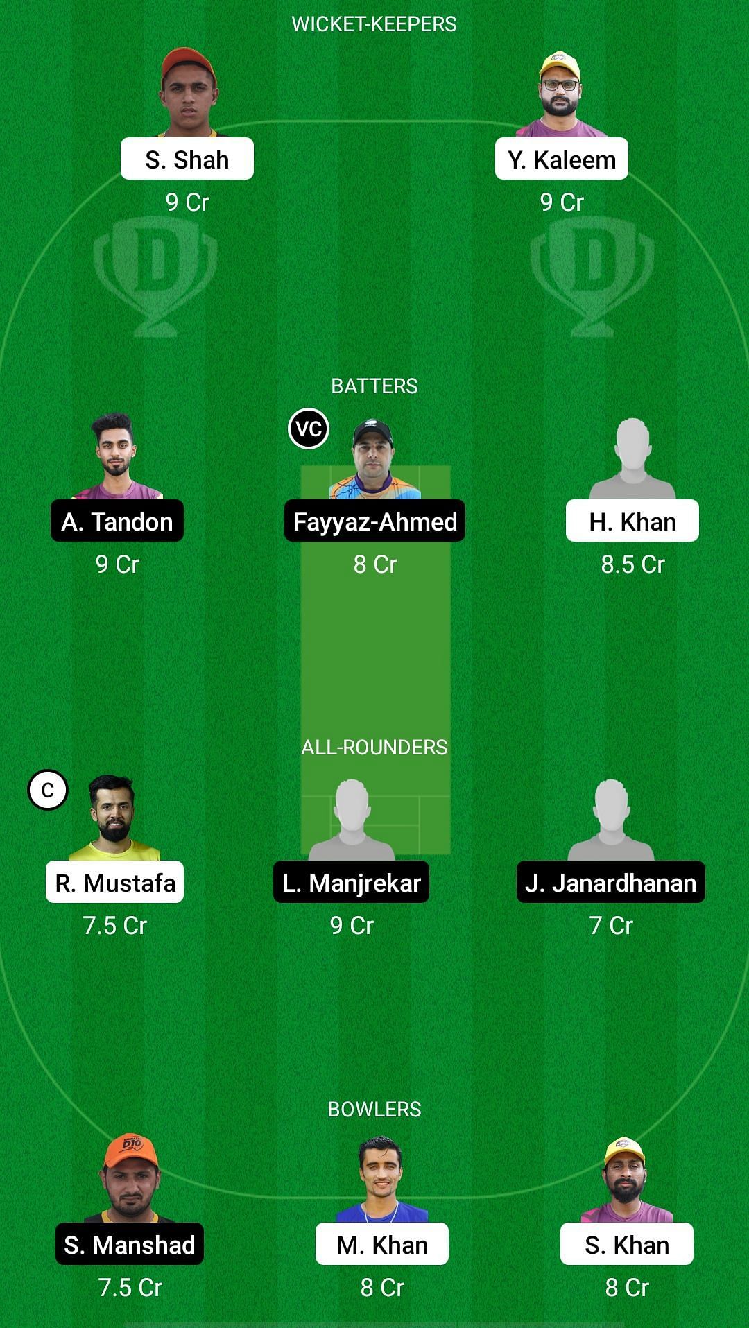 Batters: Fayyaz Ahmed, Ansh Tandon, Hameed Khan
