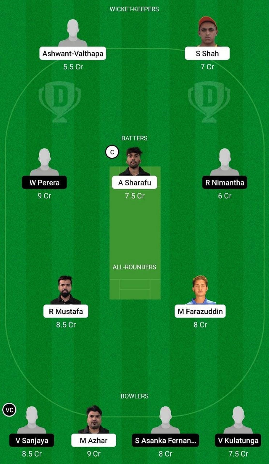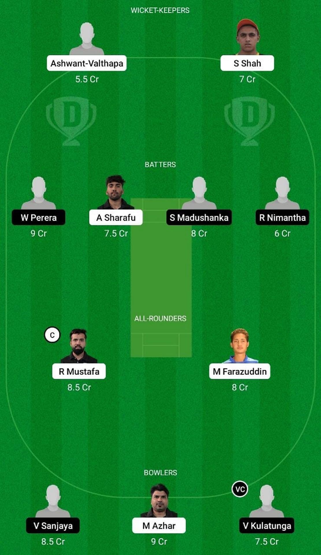 Batters: A Sharafu (c), W Perera, R Nimantha
