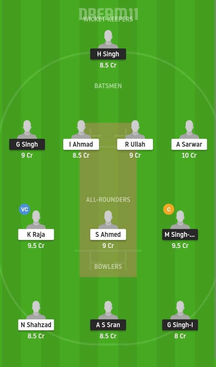 Fantasy Suggestion #1: H Singh, A Sarwar, R Ullah, I Ahmad, G Singh, M Singh-Lovely, S Ahmed, K Raja, G Singh, A S Sran, N Shahzad.