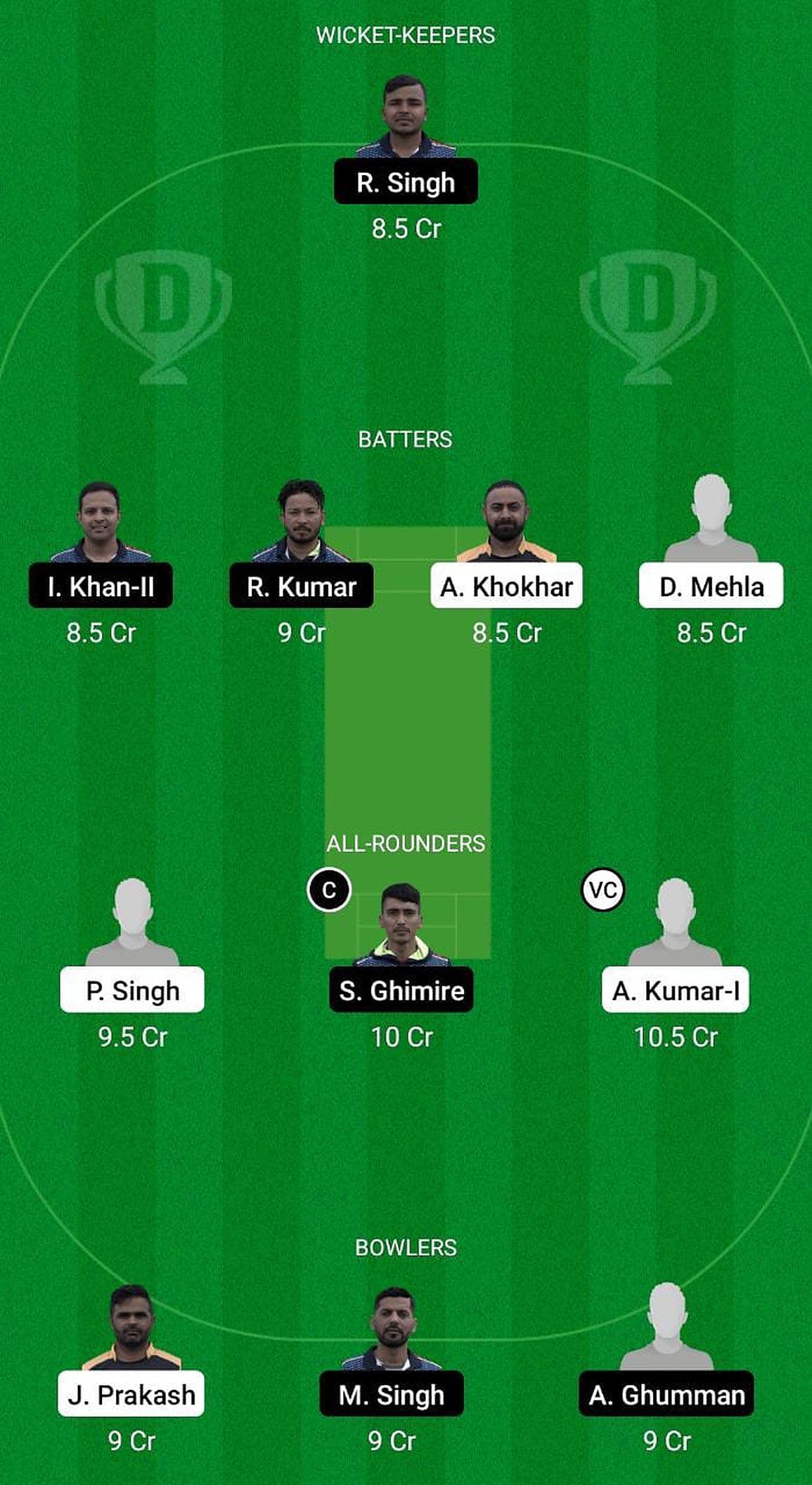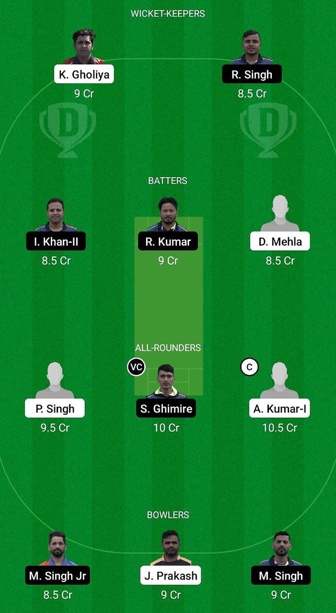 Fantasy suggestion #1: Kuldeep Gholiya, Roushan Singh, Imran Khan, Rahul Kumar, Devender Mehla, Parveen Singh, Suman Ghimire, Ankush Kumar, Manjit Singh, Jay Prakash, Mandeep Singh