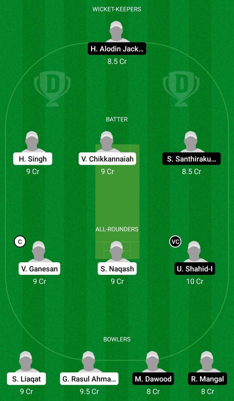 Fantasy Suggestion #2: Harish Srinivasan, Harmanjot Singh, Jubaid Ahamed, Suventhiran Santhirakumaran, Venkatraman Ganesan, Sahir Naqash, Dylan Blignaut, Usman Shahid, Ghulam Ahmadi, Dawood Ahmadzai, Rahmatullah Mangal