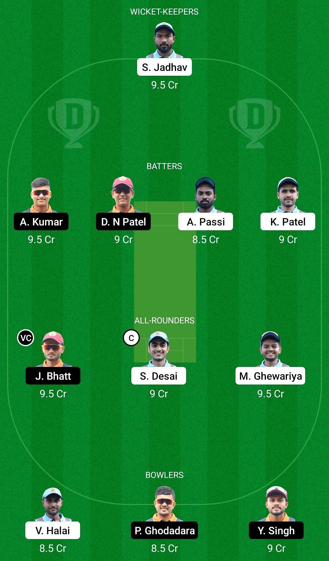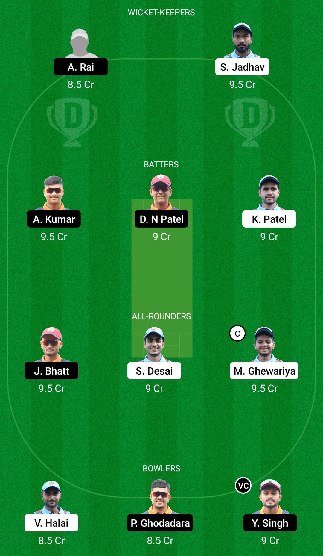 Fantasy Suggestion #1: Aayush Rai, Shubham Jadhav, Abhijit Kumar, Dhruv N Patel, Kinit Patel, Jainil Bhatt, Shlok Desai, Malhar Ghewariya, Vijay Halai, Pratik Ghodadara, Yashwardhan Singh