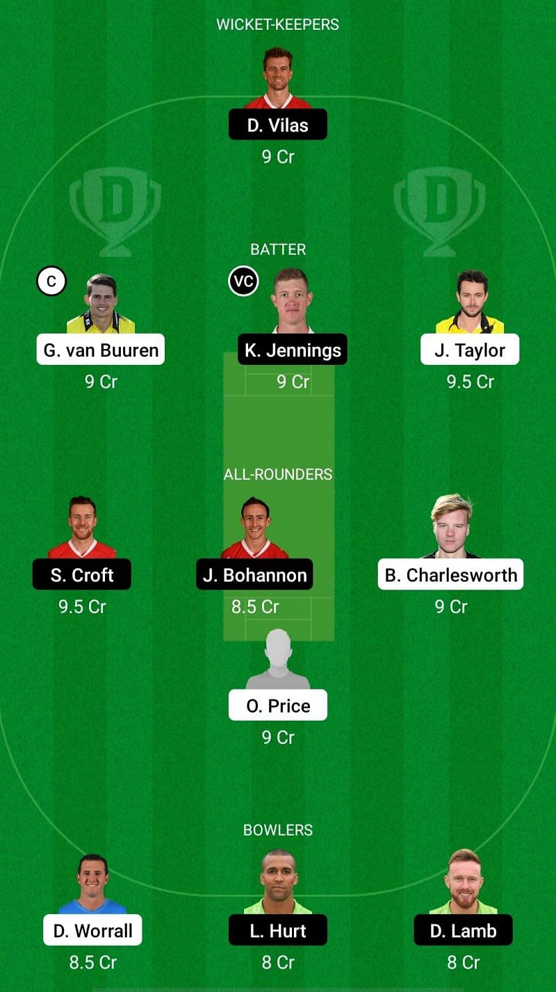 Fantasy Suggestion #1: Dane Vilas, Jack Taylor, Graeme van Buuren, Keaton Jennings, Ben Charlesworth, Oliver Price, Josh Bohannon, Steven Croft, Daniel Worrall, Danny Lamb, Liam Hurt.