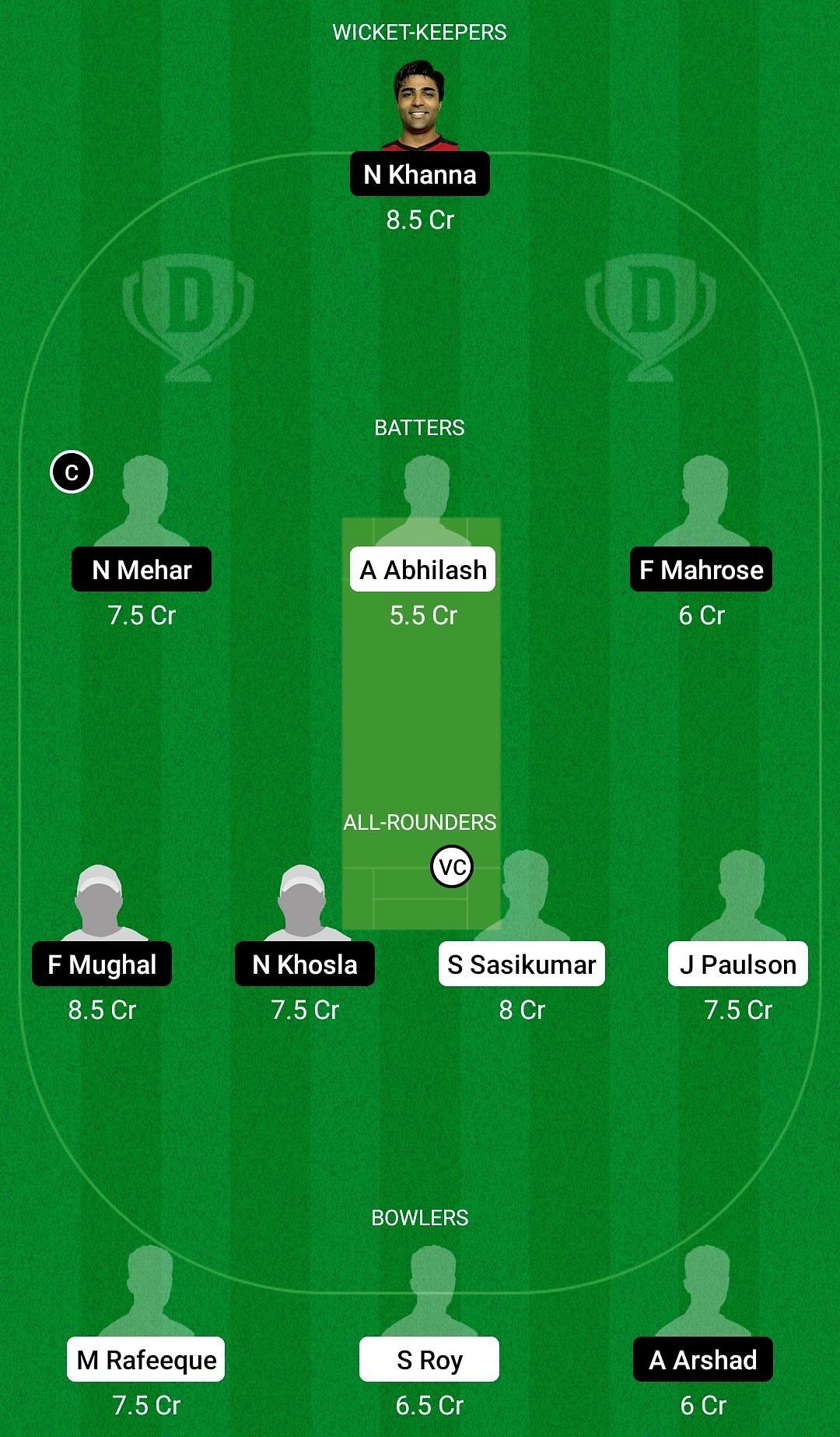 Both teams have some high-performing all-rounders and have been performing consistently. Thus, the likes of Noman Mehar, Fanyan Mughal, Sandeep Sasikumar and Josemon Paulson could be the key picks.