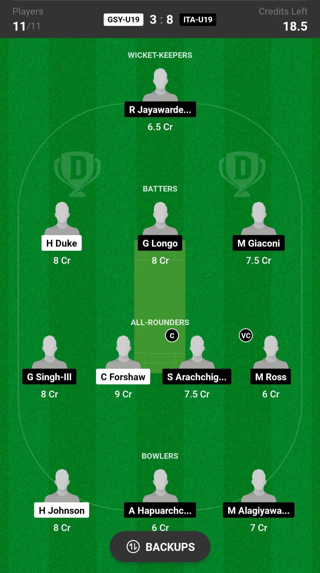 GSY-U19 vs ITA-U19 match captain and vice-captain choices