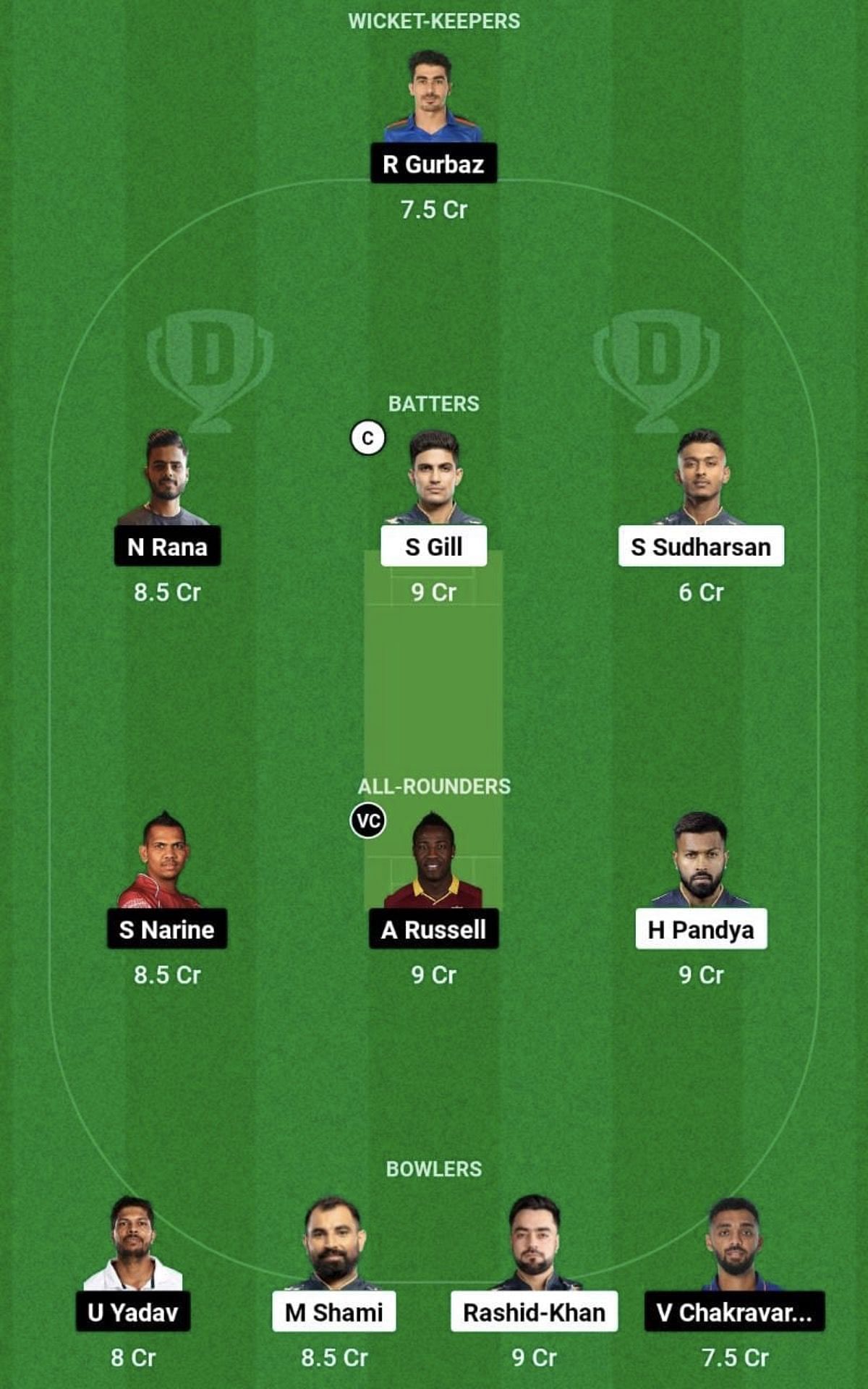 GT vs KKR Dream11 Prediction Team Today, Grand League