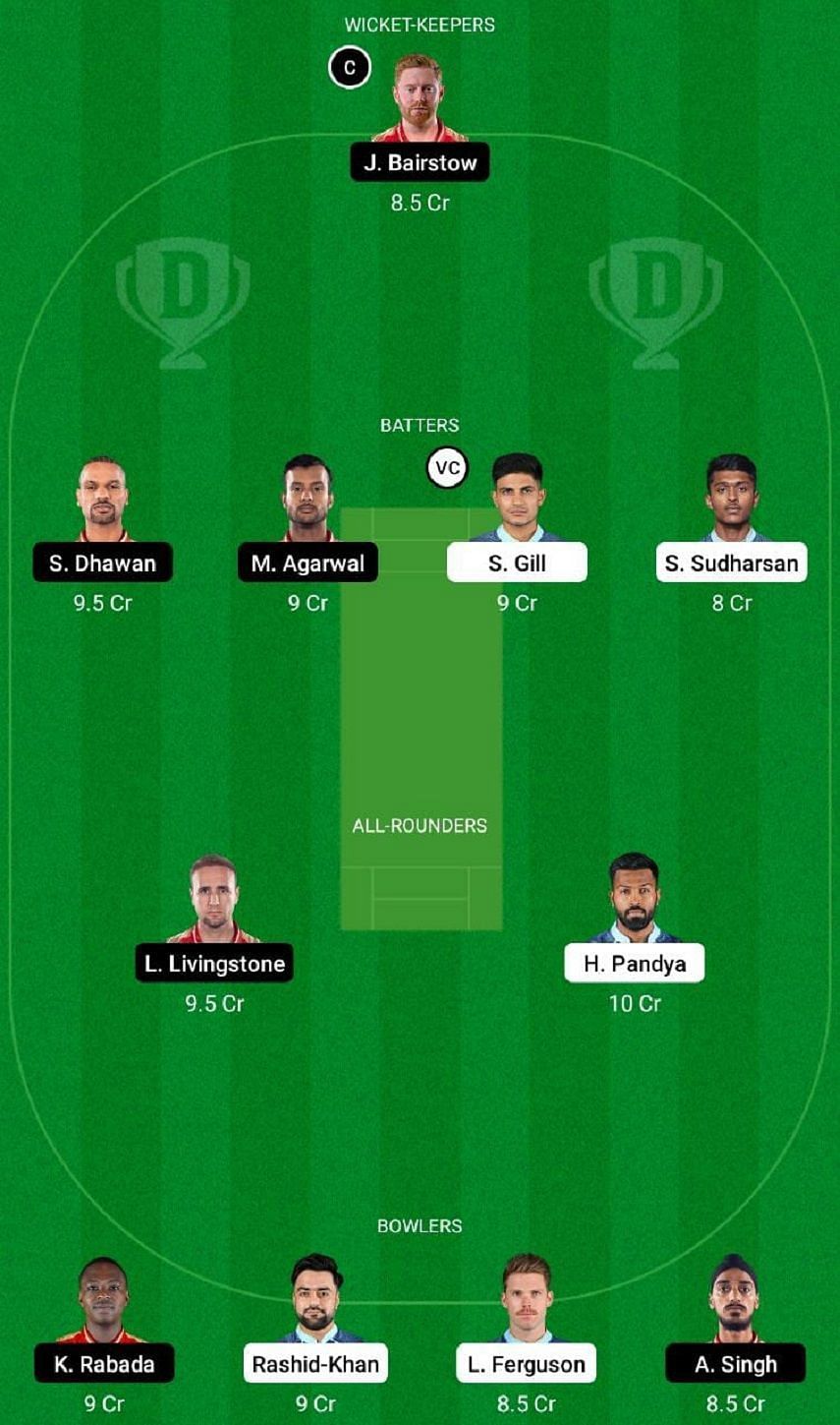 Fantasy Suggestion #1: Jonny Bairstow, Shikhar Dhawan, Shubman Gill, Mayank Agarwal, Sai Sudarshan, Liam Livingstone, Hardik Pandya, Kagiso Rabada, Rashid Khan, Arshdeep Singh and Lockie Ferguson.
