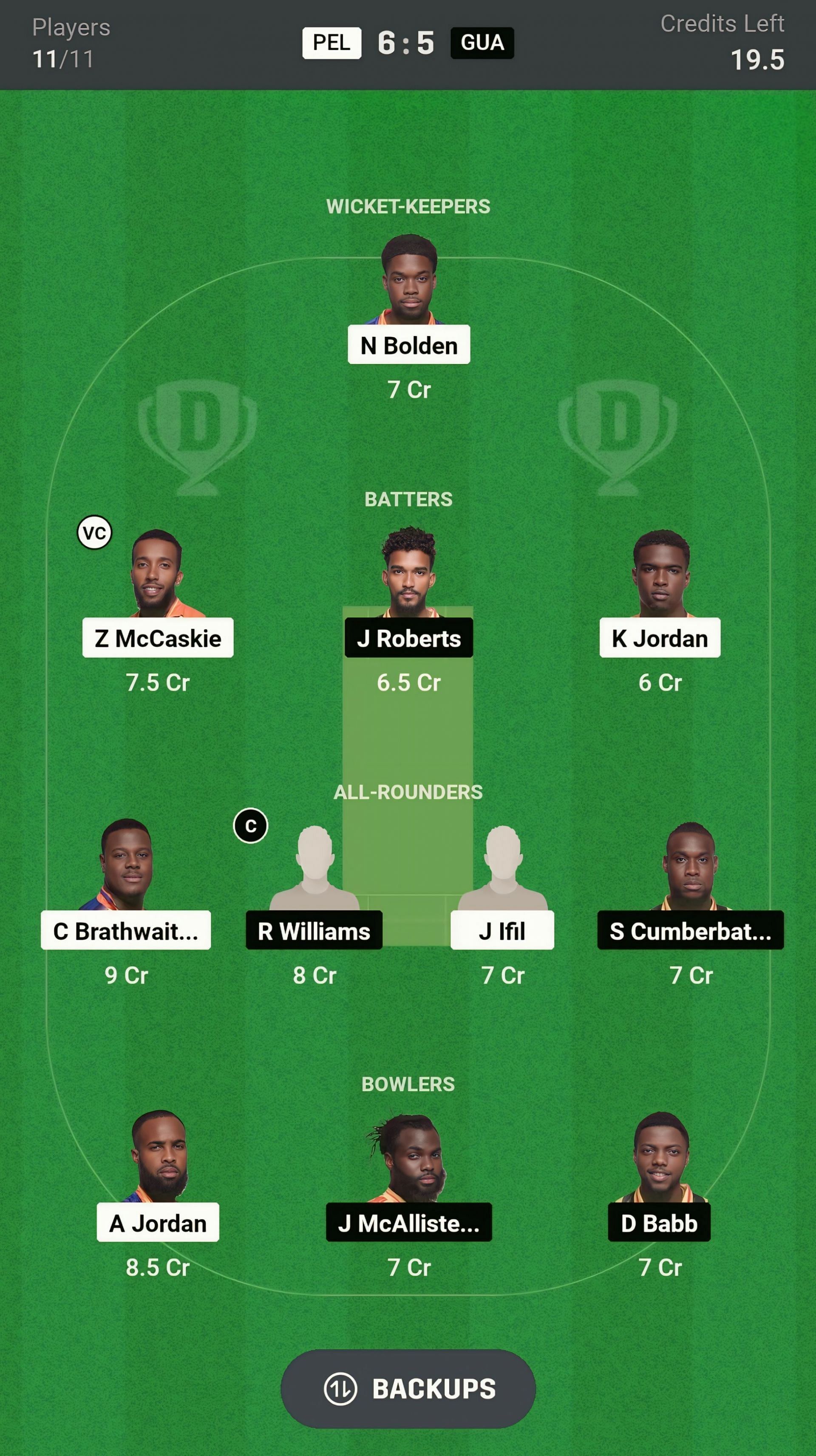 J Roberts and Z McCaskie are the two best batter picks for today's Dream11 team. Z McCaskie is a hard hitter who can score a lot of runs at this venue. He has an excellent venue record. He smashed 62 runs in just 24 balls in the last match. K Jordan is another good batter for today's match.
