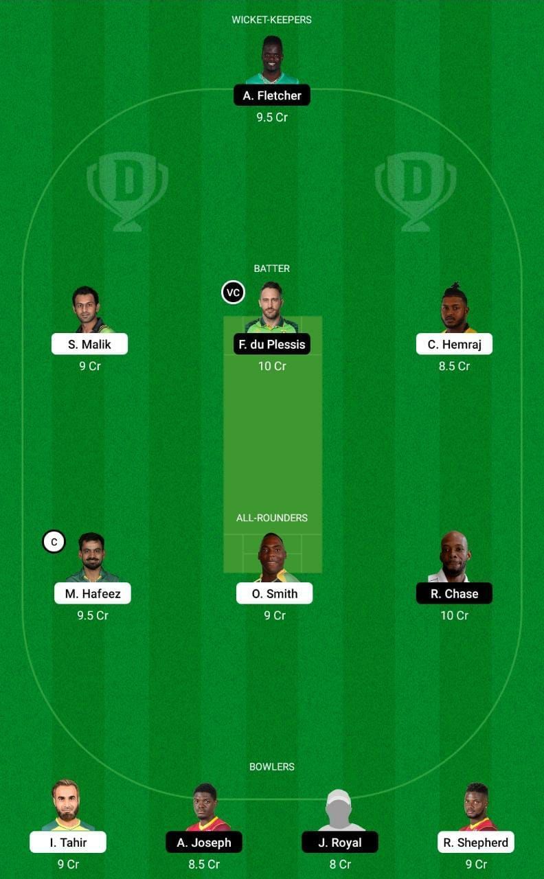 Fantasy Suggestion #1: Andre Fletcher, Chandrapaul Hemraj, Faf du Plessis, Shoaib Malik, Roston Chase, Odean Smith, Mohammad Hafeez, Romario Shepherd, Imran Tahir, Jeavor Royal and Alzarri Joseph