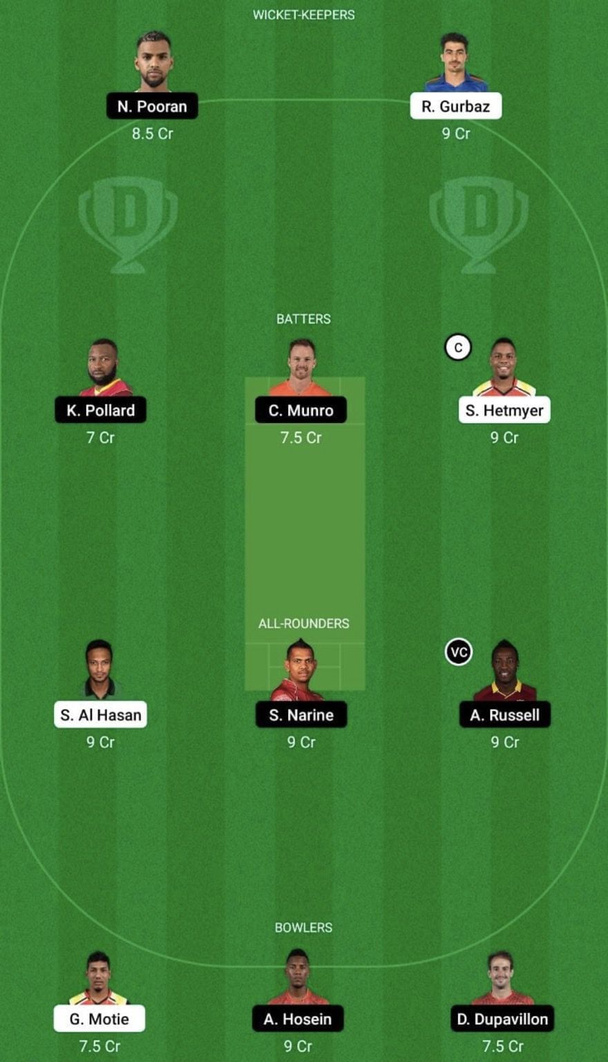 Rahmanullah Gurbaz (wk), Chandrapaul Hemraj, Shai Hope, Shimron Hetmyer (c), Shakib Al Hasan, Keemo Paul, Odean Smith, Romario Shepherd, Imran Tahir, Junior Sinclair and Gudakesh Motie.
