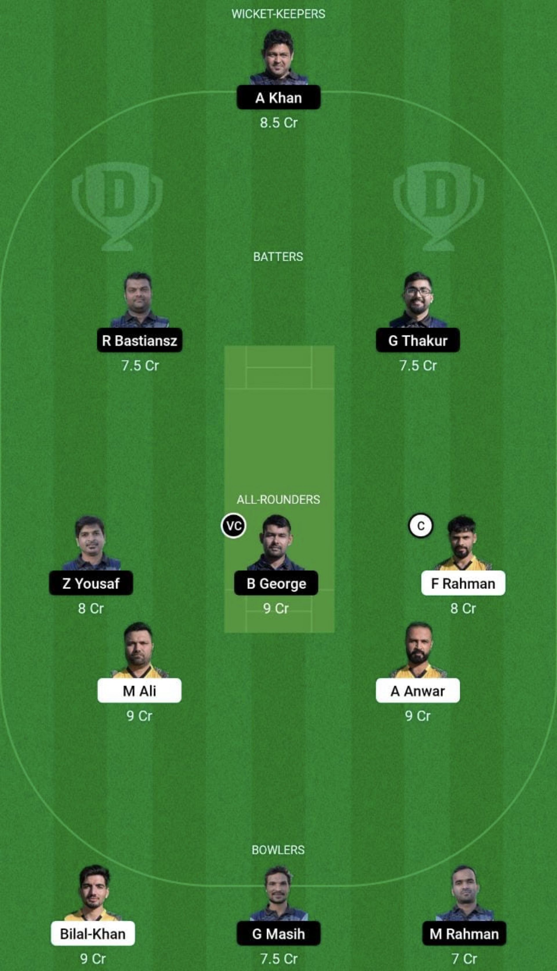 All-rounders: B George (c), F Rahman, M Avishka, M Ali (vc), A Anwar