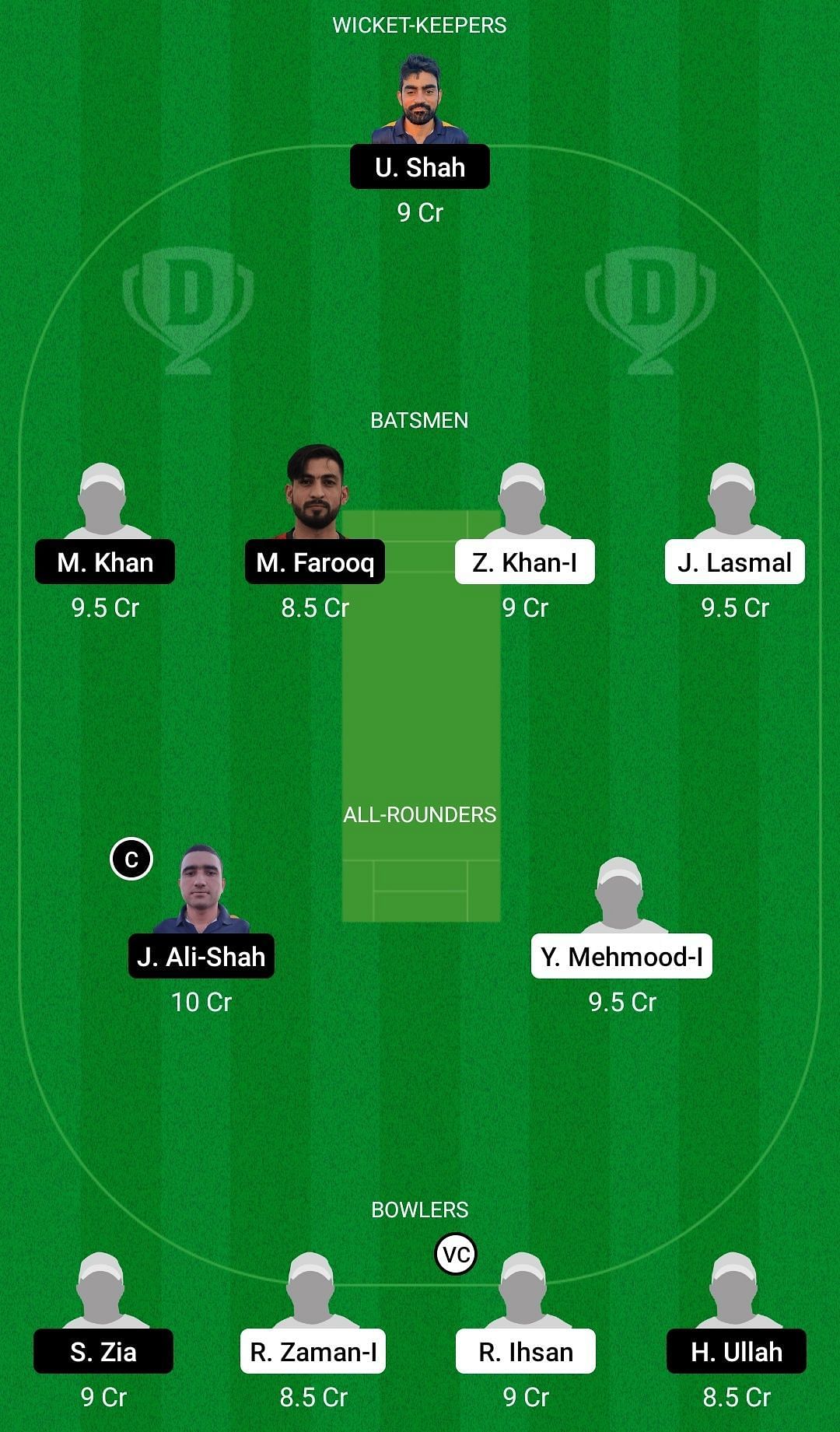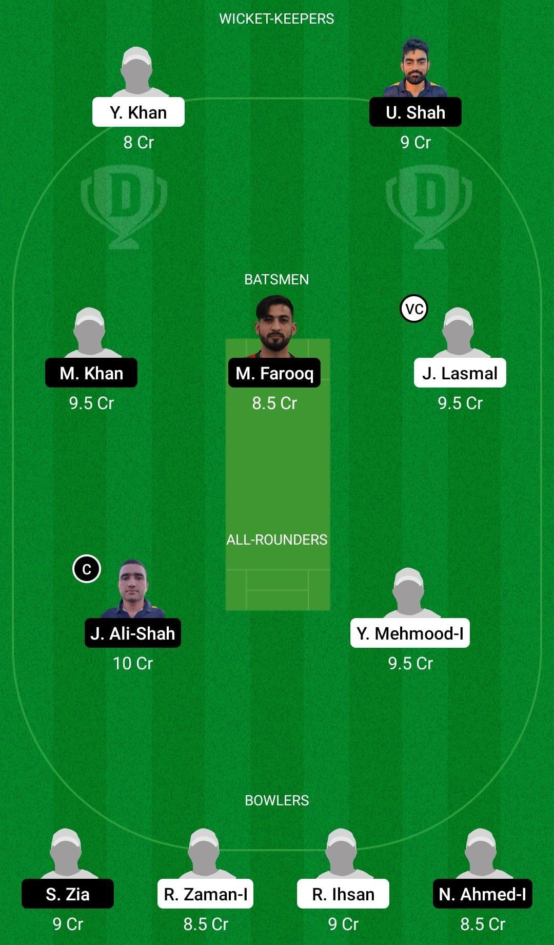 Fantasy Suggestion #1: Umar Shah, Murtaza Khan, Muhammad Farooq, Zeshan Khan, Jeevan Lasmal, Jawad Ali Shah, Yasir Mehmood, Syed Zia, Rauf Zaman, Raza Ihsan, Hasher Ullah