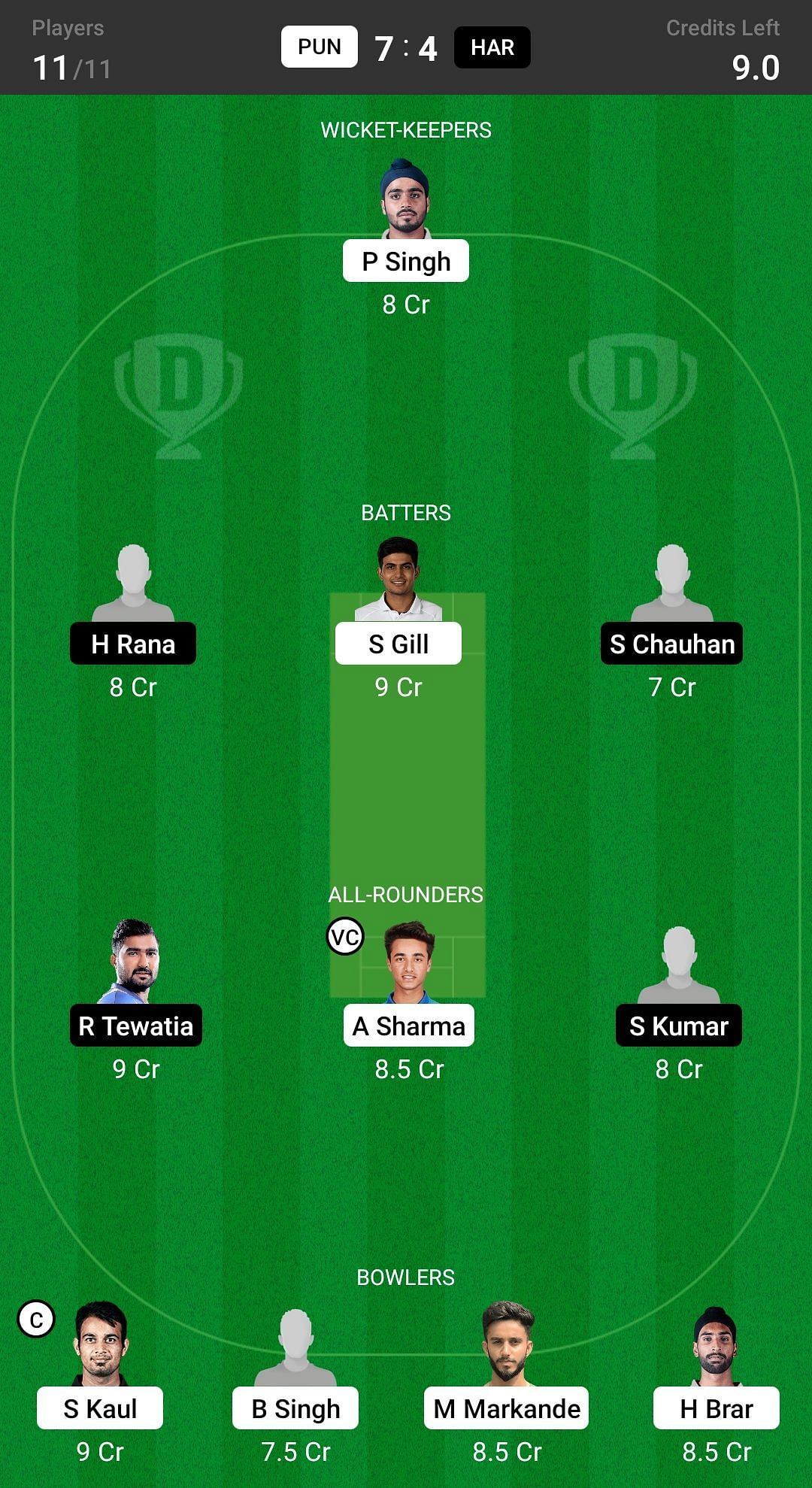 Haryana vs Punjab Dream11 Prediction Today, Grand League