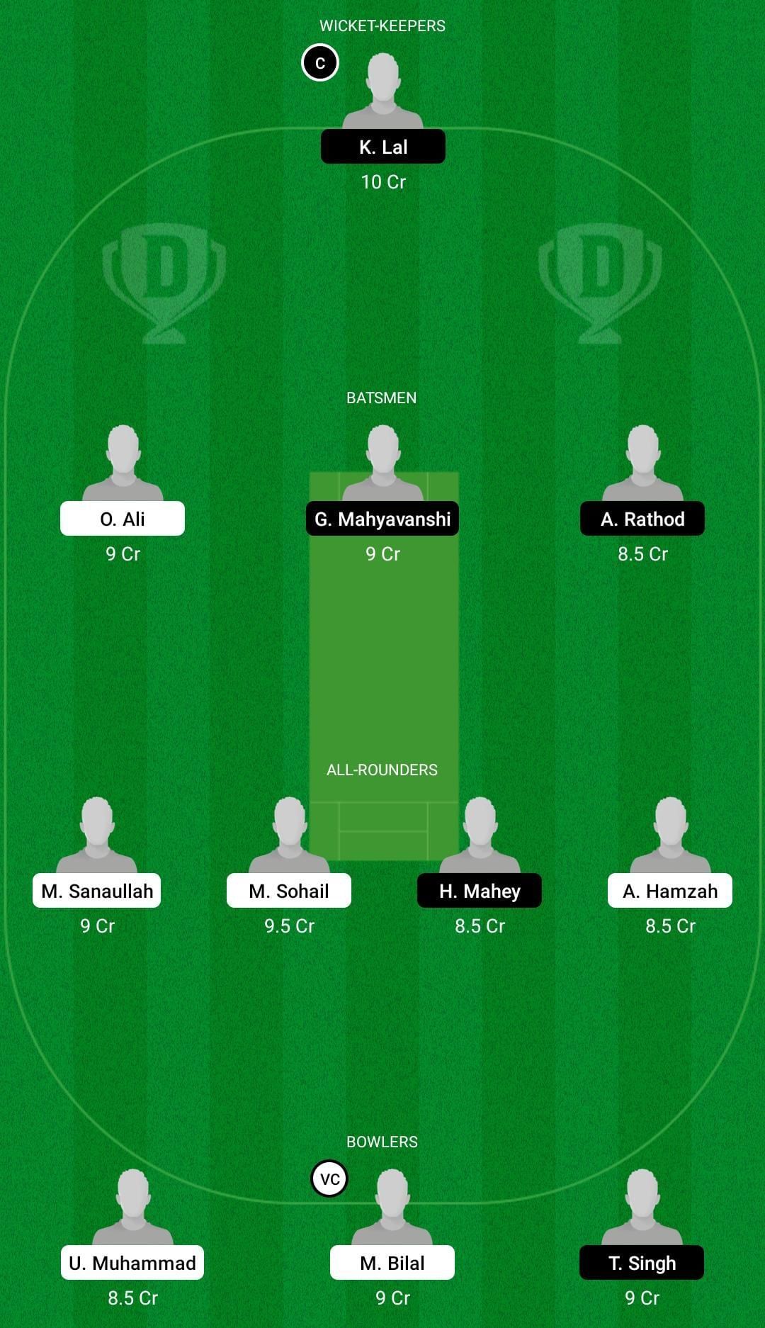 Fantasy Suggestion #1: Kuldeep Lal, Omar Ali, Gaurang Mahyavanshi, Amol Rathod, Muhammad Sanaullah, Muhammad Sohail, Heera Mahey, Ameer Hamzah, Umair Muhammad, Muhammad Bilal, Trilochan Singh.