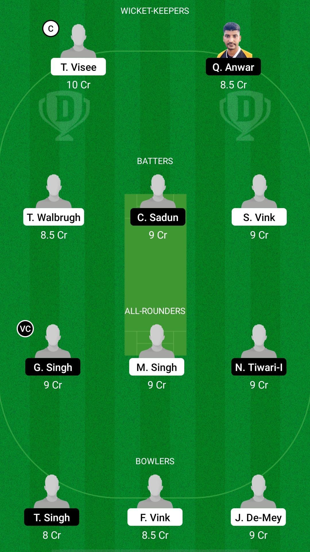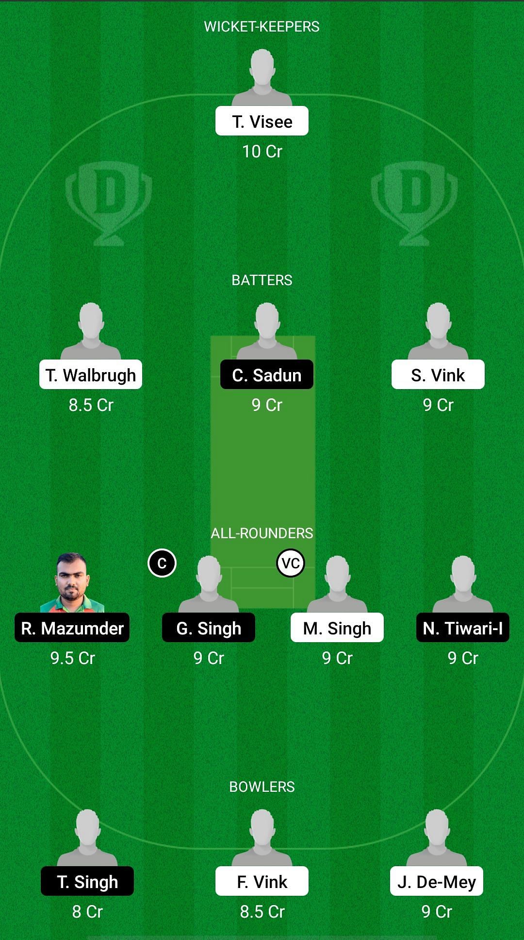 Fantasy Suggestion #1: Tobias Vise, Tayo Walbrugh, Chamal Sadun, Stephan Vink, Roman Mazumder, Gurapartap Singh, Manjinder Singh, Neeraj Tiwari, Tejwinder Singh, Ferdi Vink, Julian De Mey.