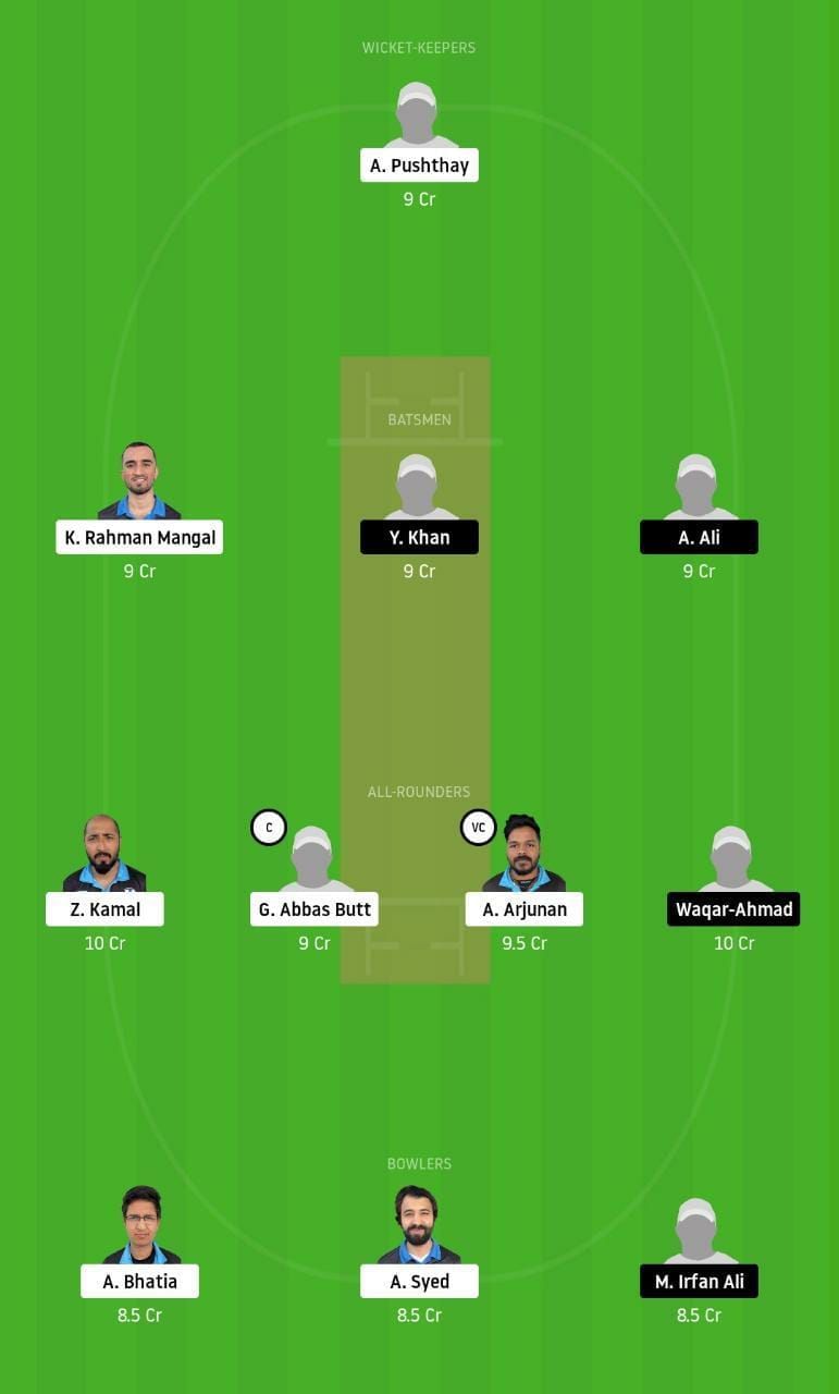 Fantasy Suggestion #2: A Pushtay, W Ifthikar, K Rahman Mangal, Y Khan, A Arjunan, G Abbas Butt, S Akram, Z Kamal, A Syed, O Sadiqui, M Ali