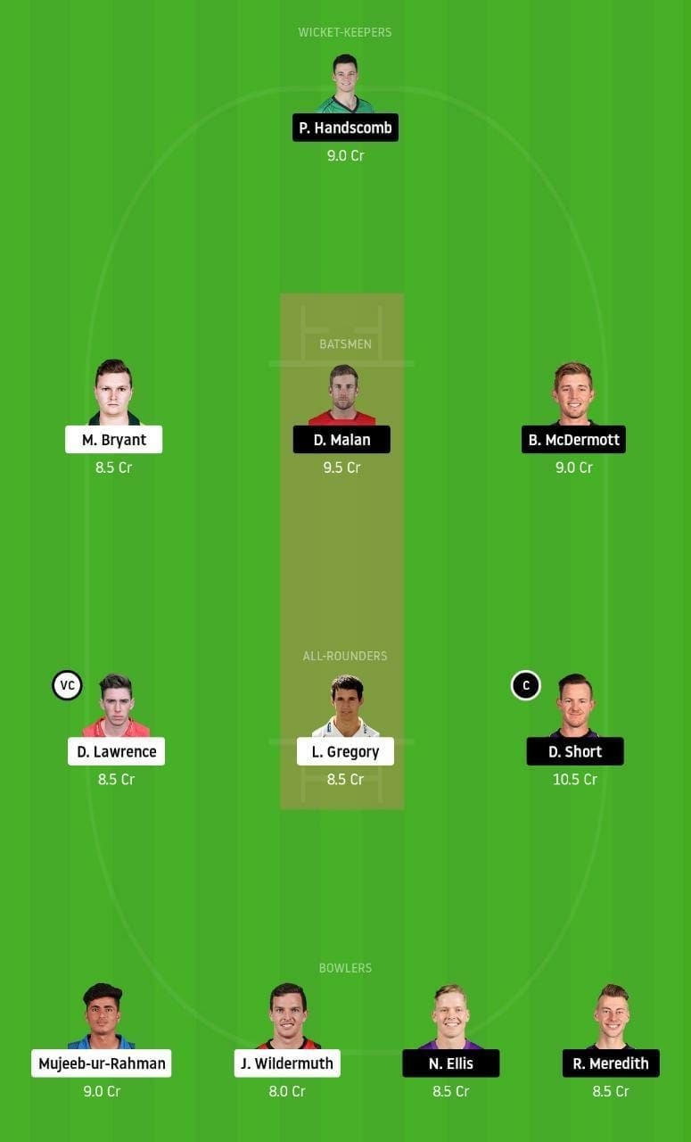 Fantasy Suggestion #1: Peter Handscomb, Max Bryant, Dawid Malan, Ben McDermott, Dan Lawrence, Lewis Gregory, D'Arcy Short, Mujeeb Ur Rahman, Jack Wildermuth, Nathan Ellis and Riley Meredith