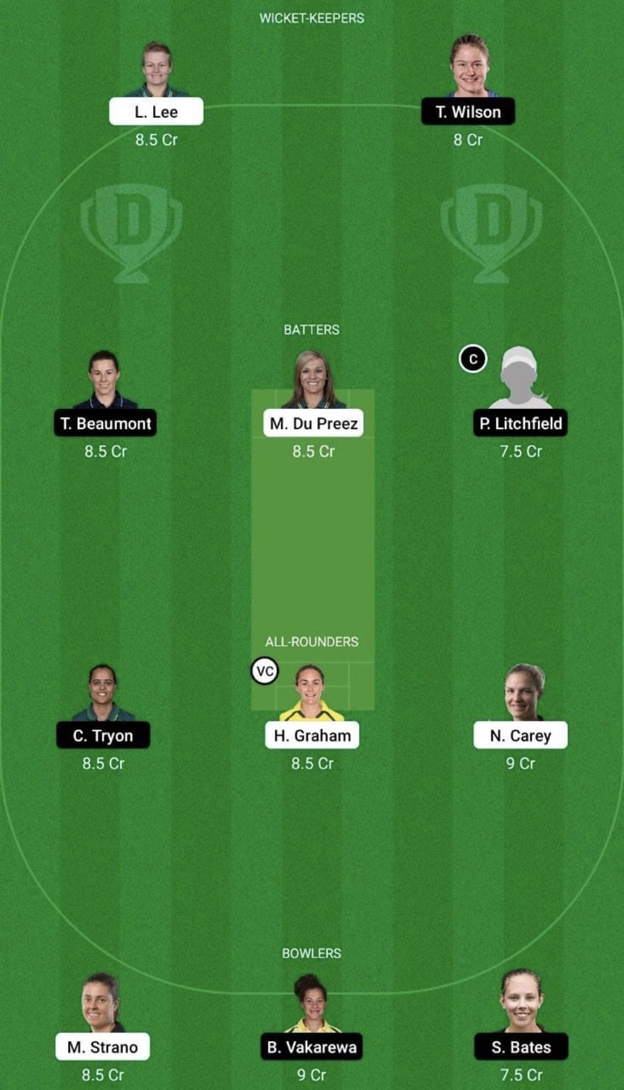 Tammy Beaumont, Phoebe Litchfield, Rachael Haynes (c), Chloe Tryon, Tahlia Wilson (wk), Anika Learoyd, Sammy-Jo Johnson, Lea Tahuhu, Lauren Smith, Belinda Vakarewa and Samantha Bates.